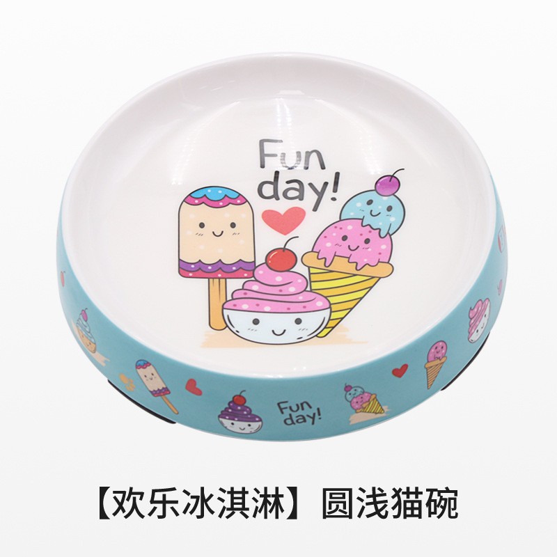• 6.75인치 해피 아이스크림 라운드 얕은 고양이 그릇 b