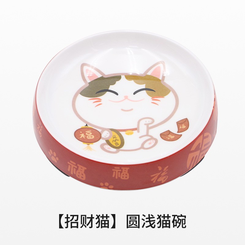 • 6.75인치 행운의 고양이 둥근 얕은 고양이 그릇