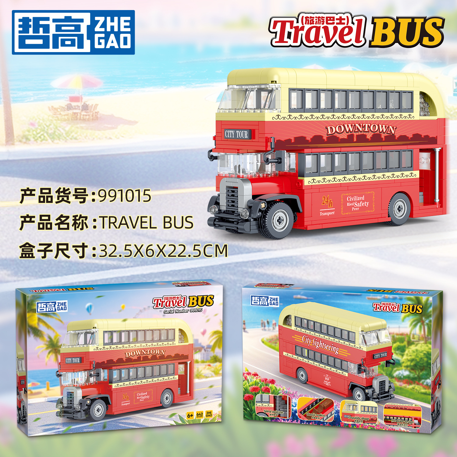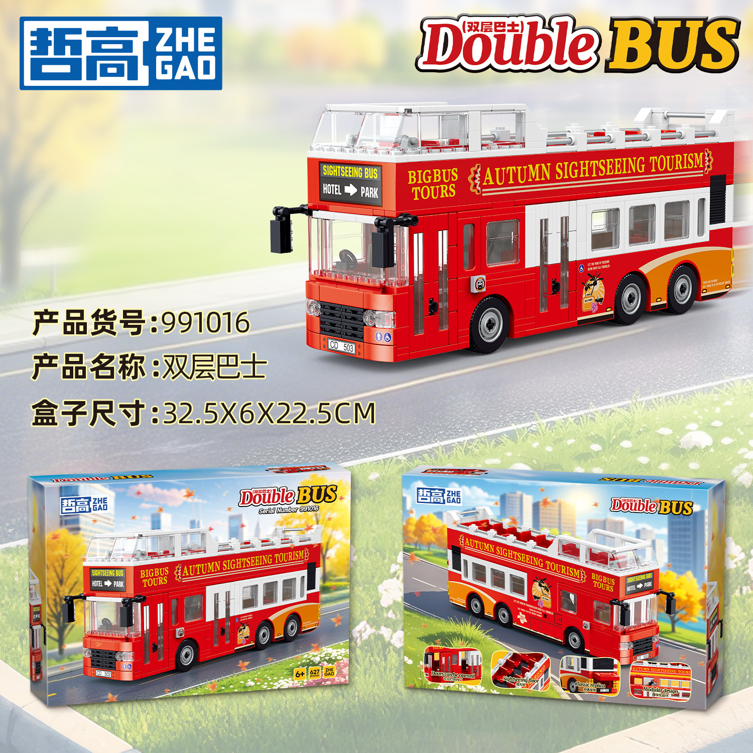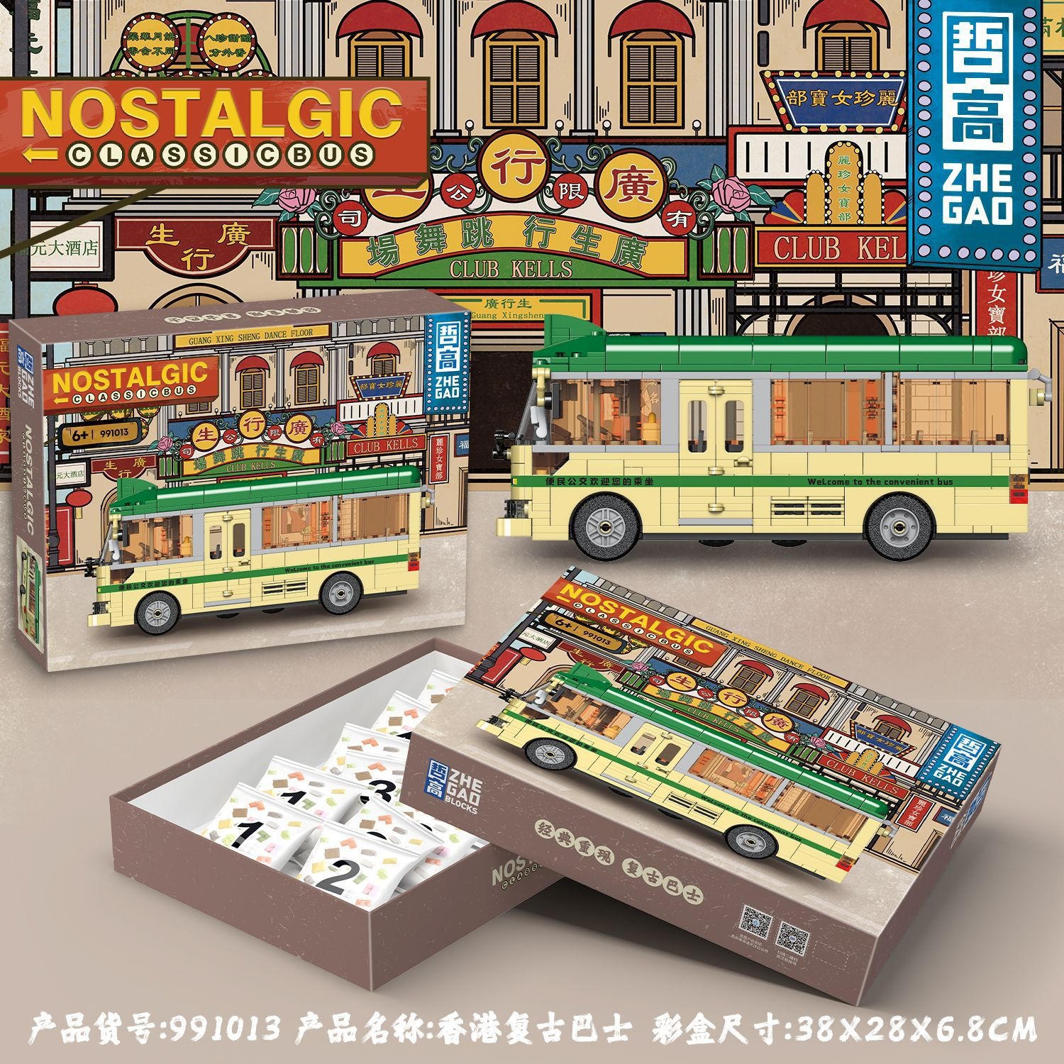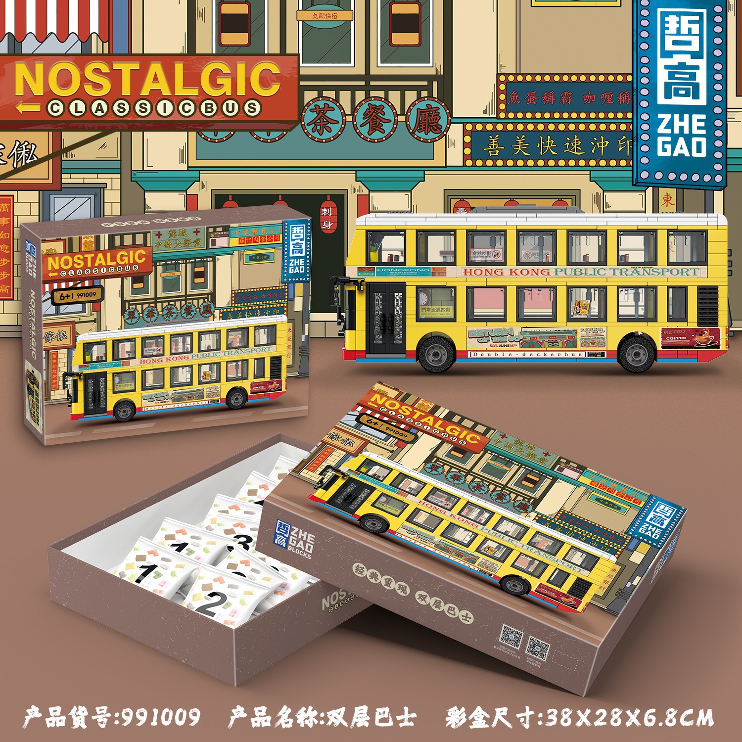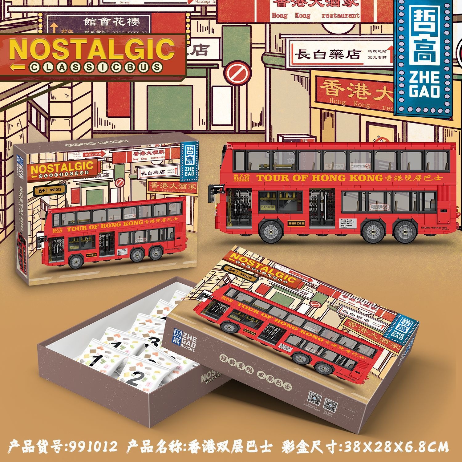 제고 블록 991008-16 클래식 이층버스 레트로 모델 트렌디한 교육용 조립 장난감스토어 가기