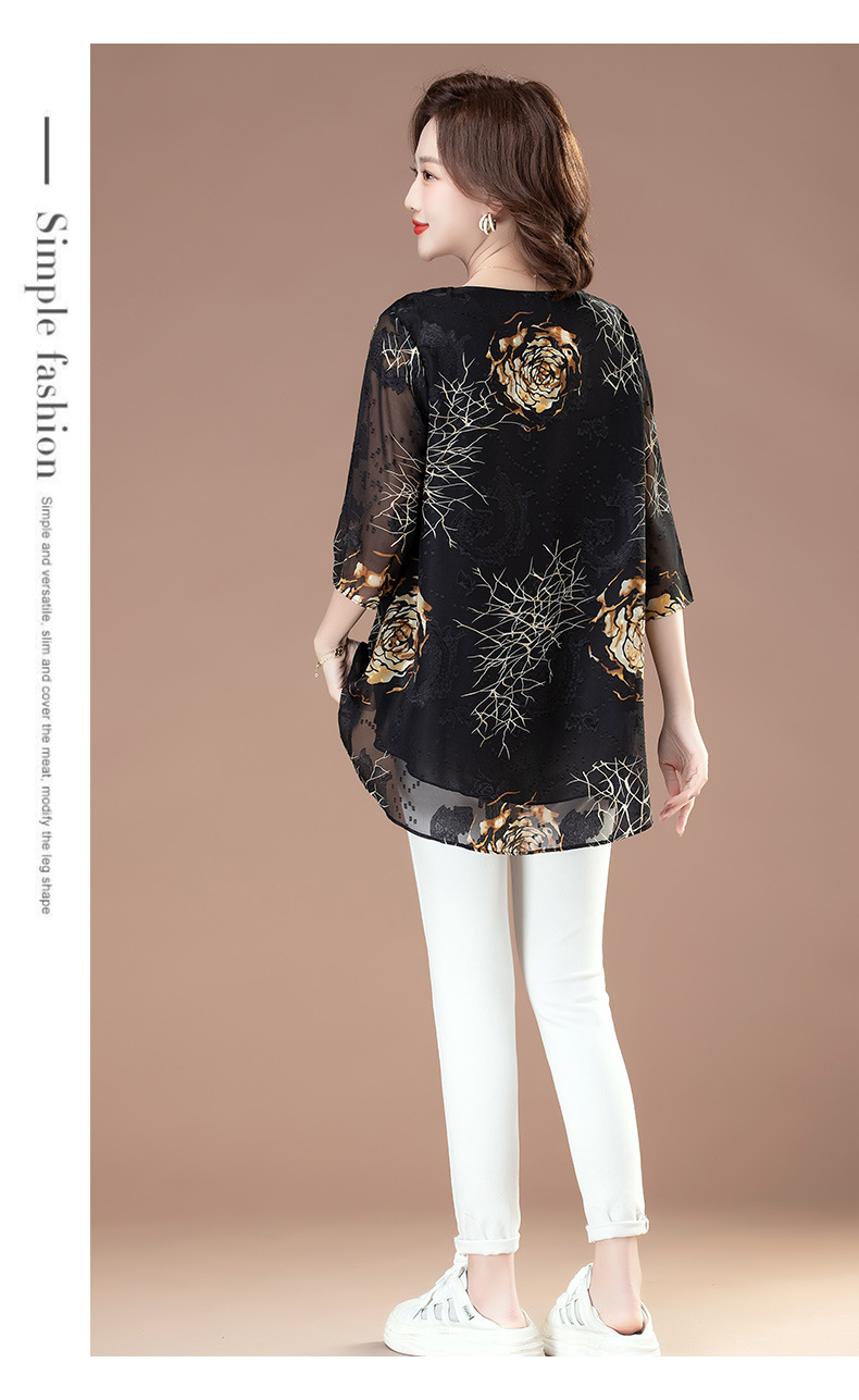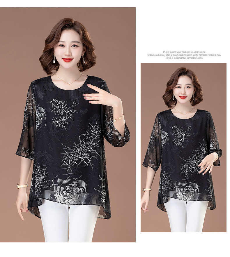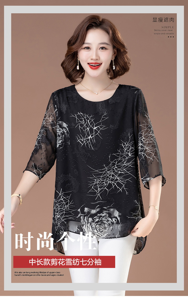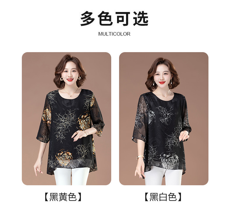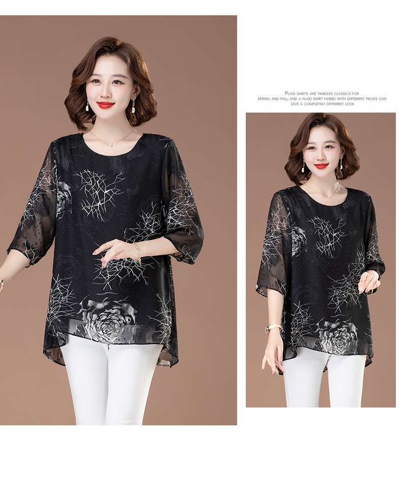 중년 및 노인 여성을위한 7부 소매 쉬폰 셔츠 2025 봄, 여름 어머니의 바닥 셔츠 서양식 패션 티셔츠 작은 셔츠상의스토어 가기