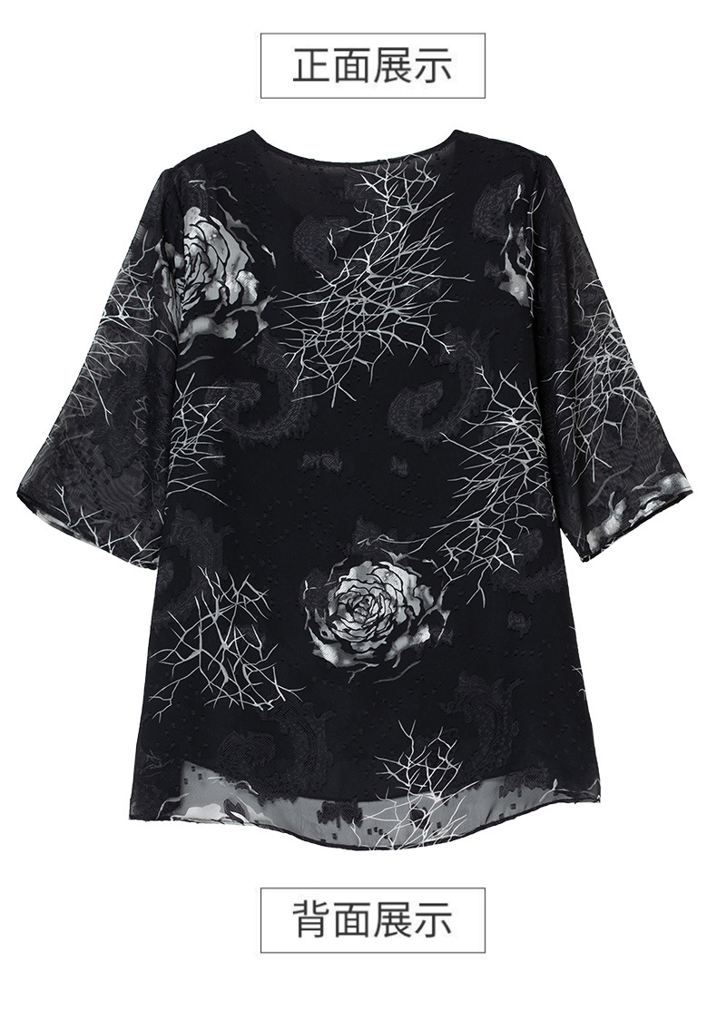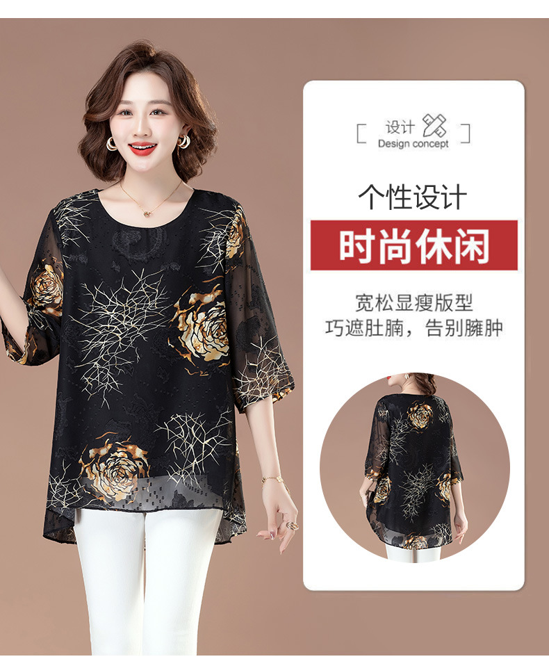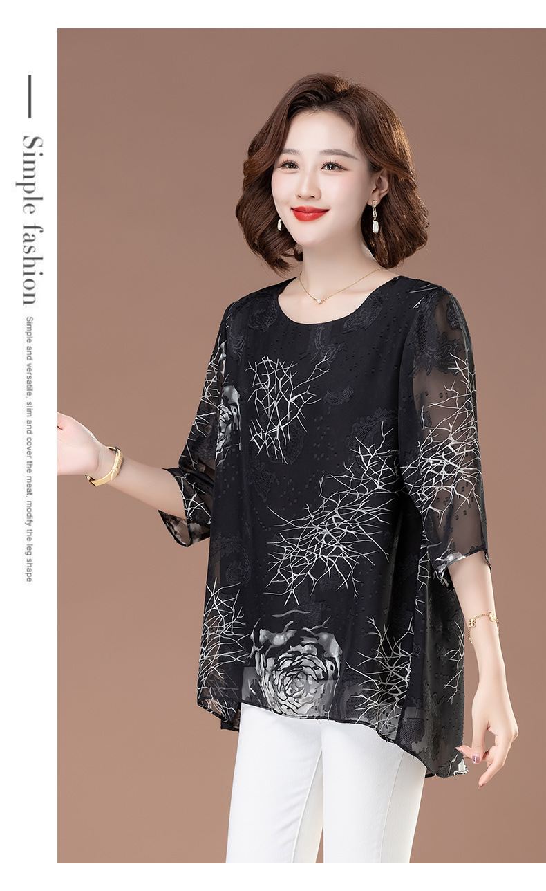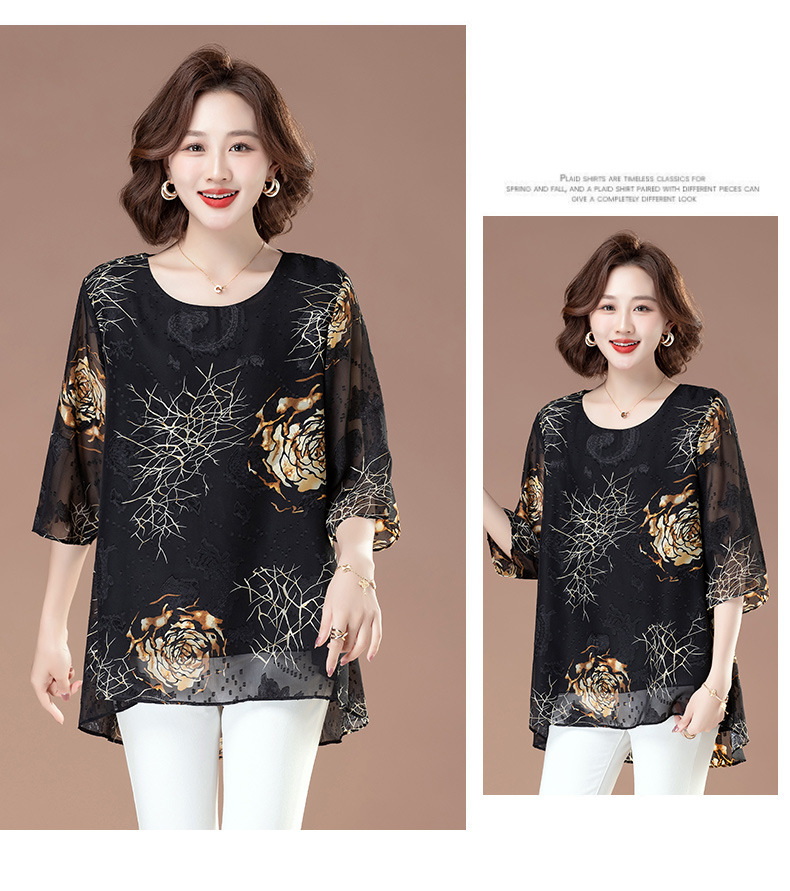 중년 및 노인 여성을위한 7부 소매 쉬폰 셔츠 2025 봄, 여름 어머니의 바닥 셔츠 서양식 패션 티셔츠 작은 셔츠상의스토어 가기