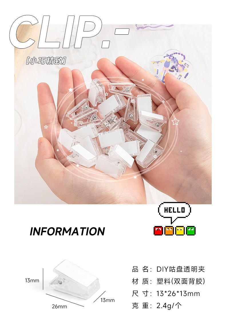 아크릴 클립 문구 액세서리 플라스틱 클립 투명 작은 클립 접착제 파일 테스트 종이 클립 자체 접착 손 계정 PP 클립스토어 가기