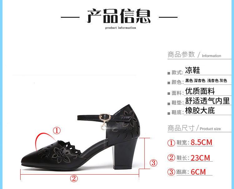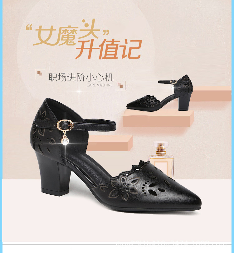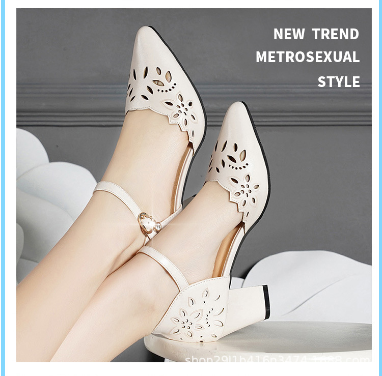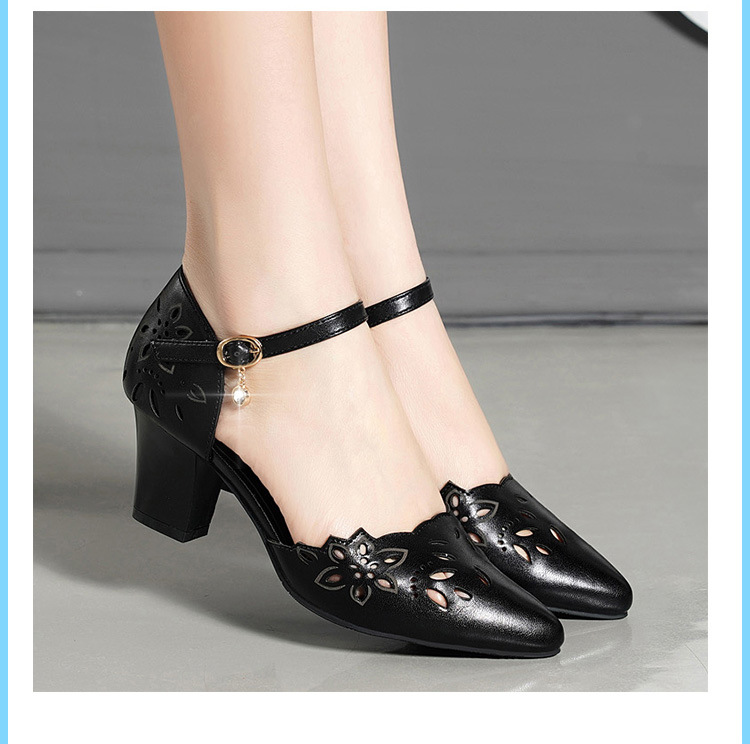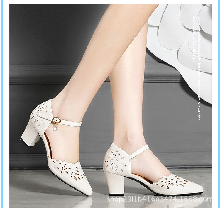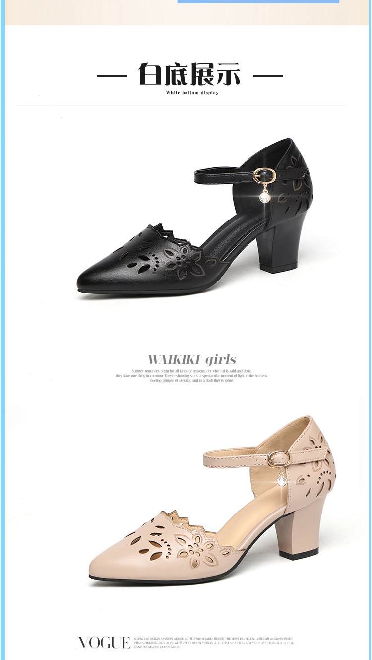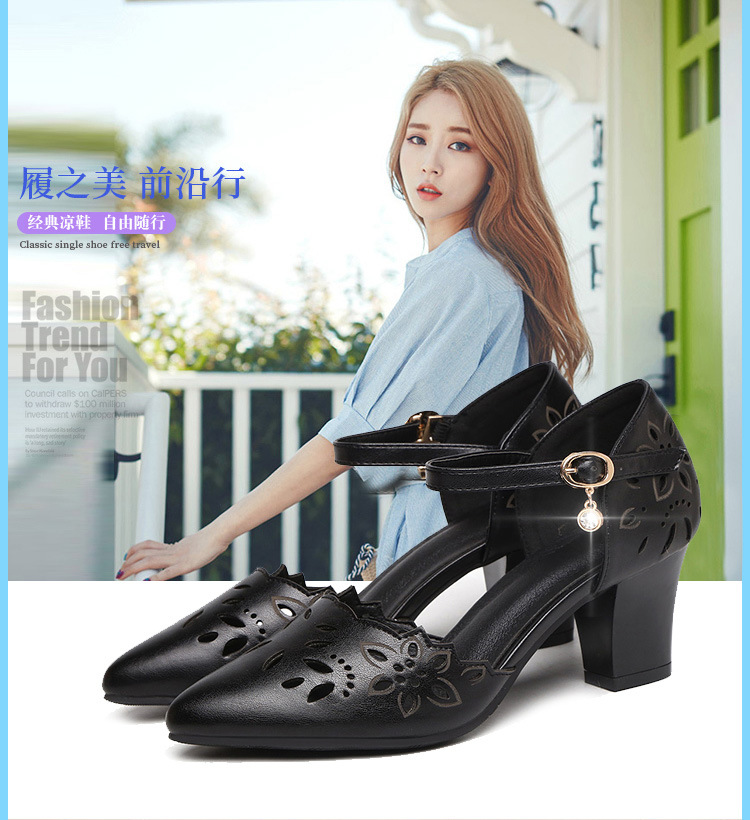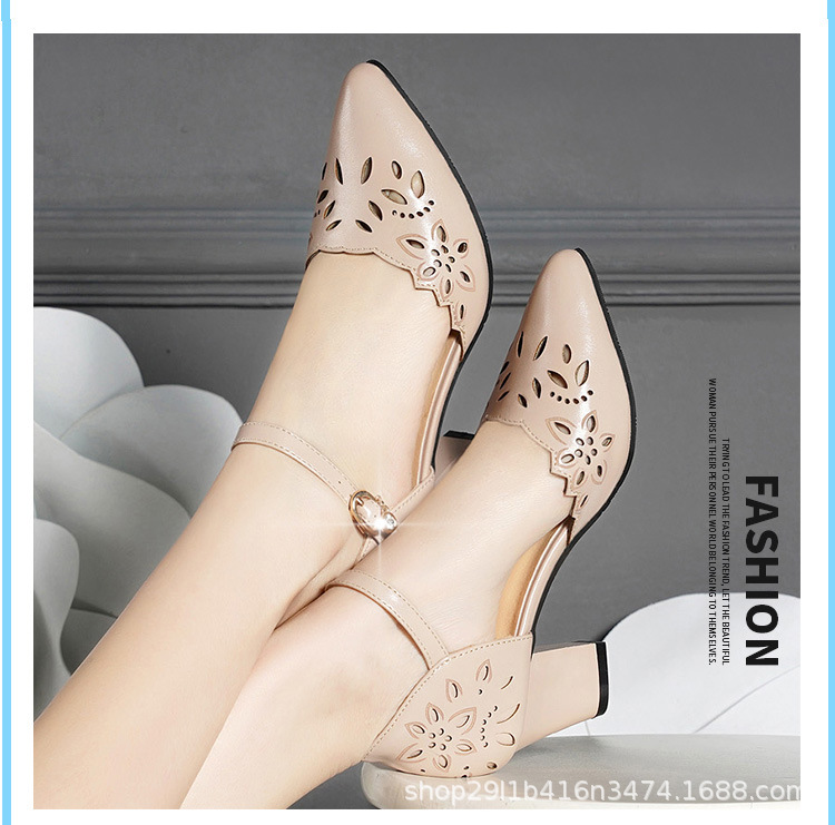 2024 뉴 할로우 올 매치 편안한 싱글 레이어 신발 여성용 두꺼운 힐 캐주얼 미드 힐 여성용 하이힐 플러스 사이즈 샌들스토어 가기