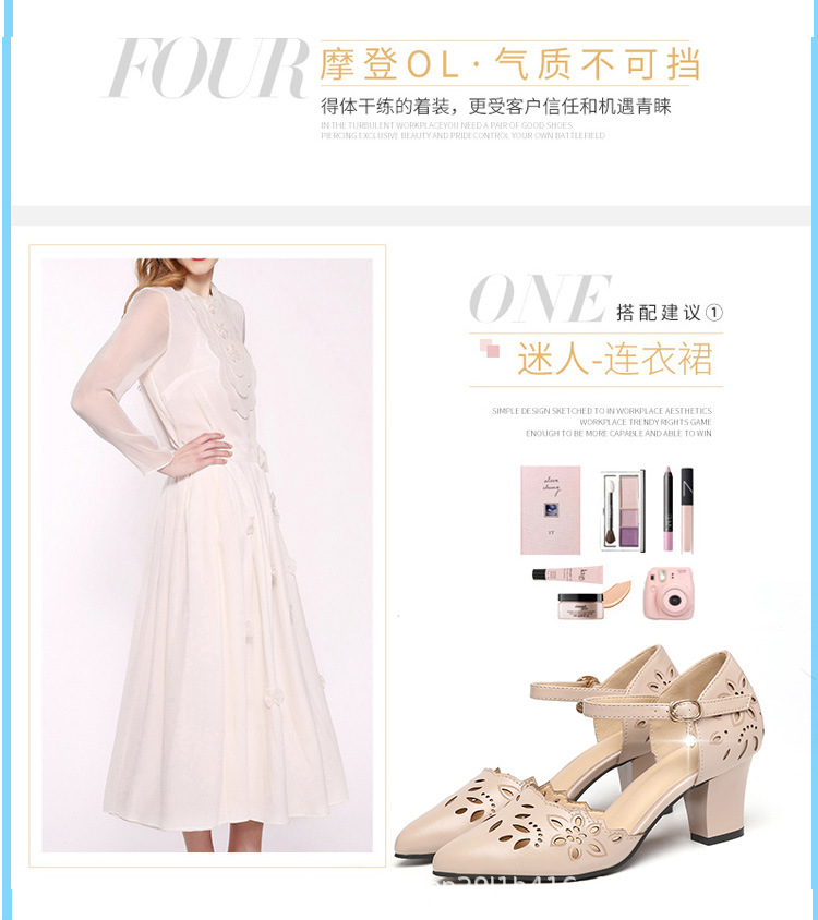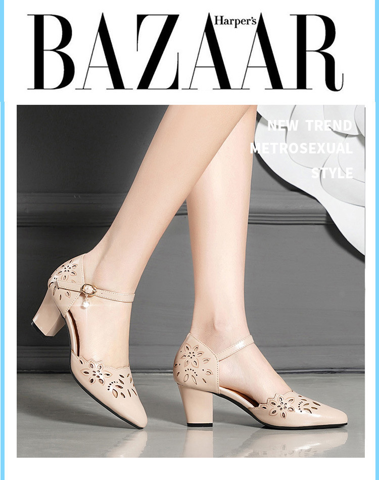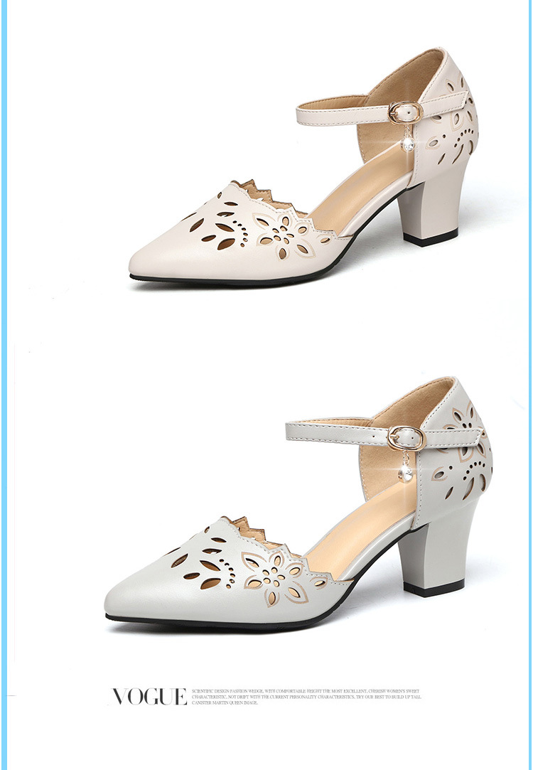 2024 뉴 할로우 올 매치 편안한 싱글 레이어 신발 여성용 두꺼운 힐 캐주얼 미드 힐 여성용 하이힐 플러스 사이즈 샌들
