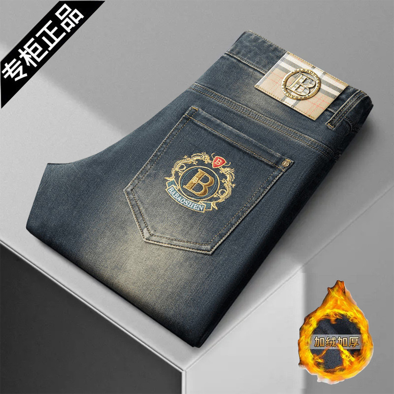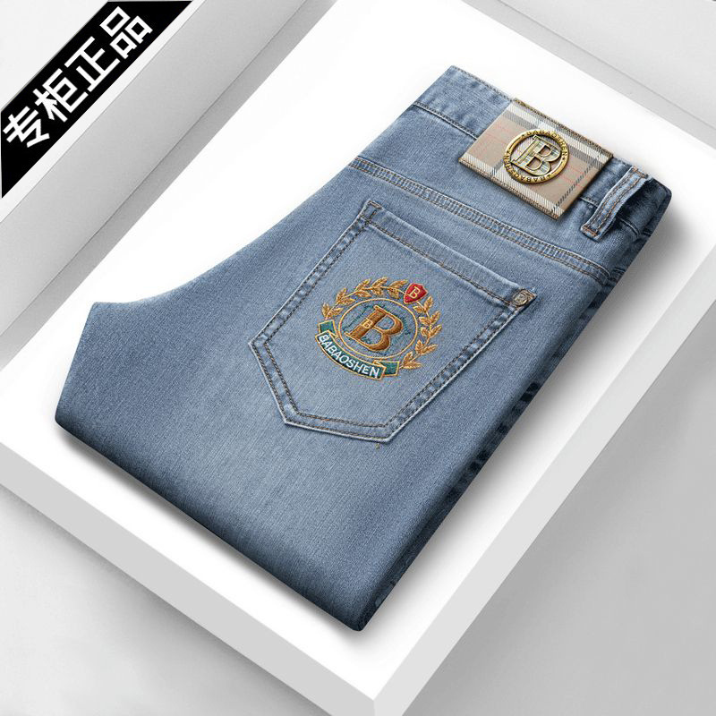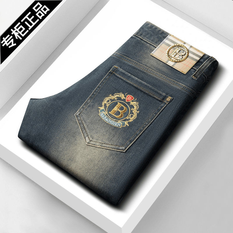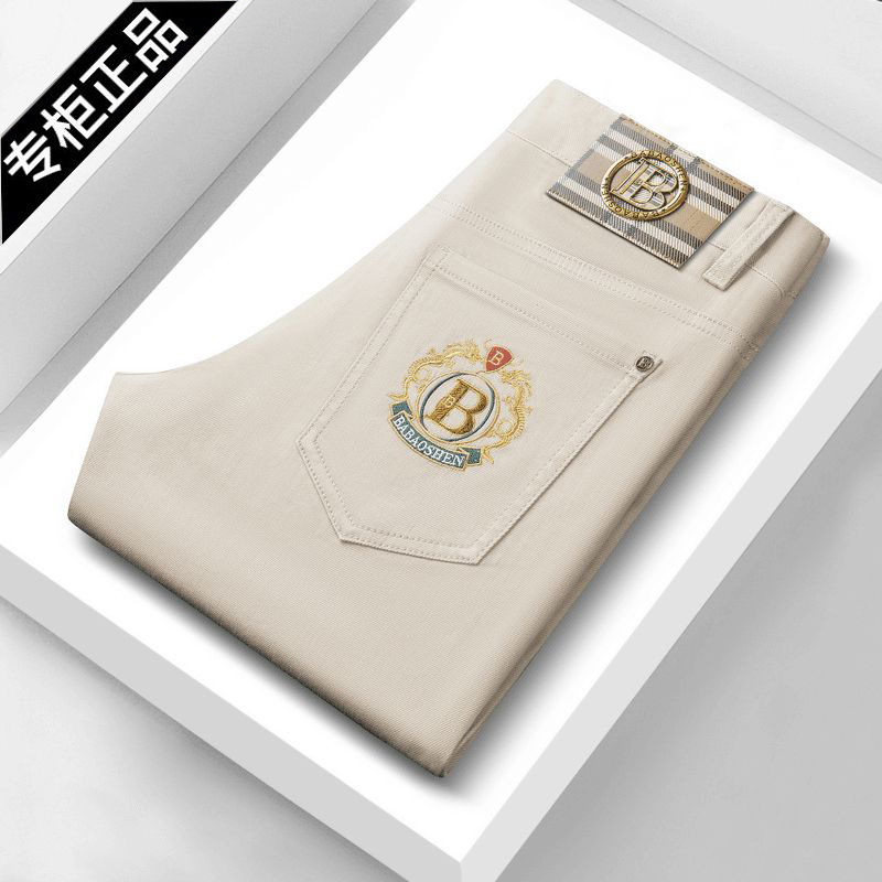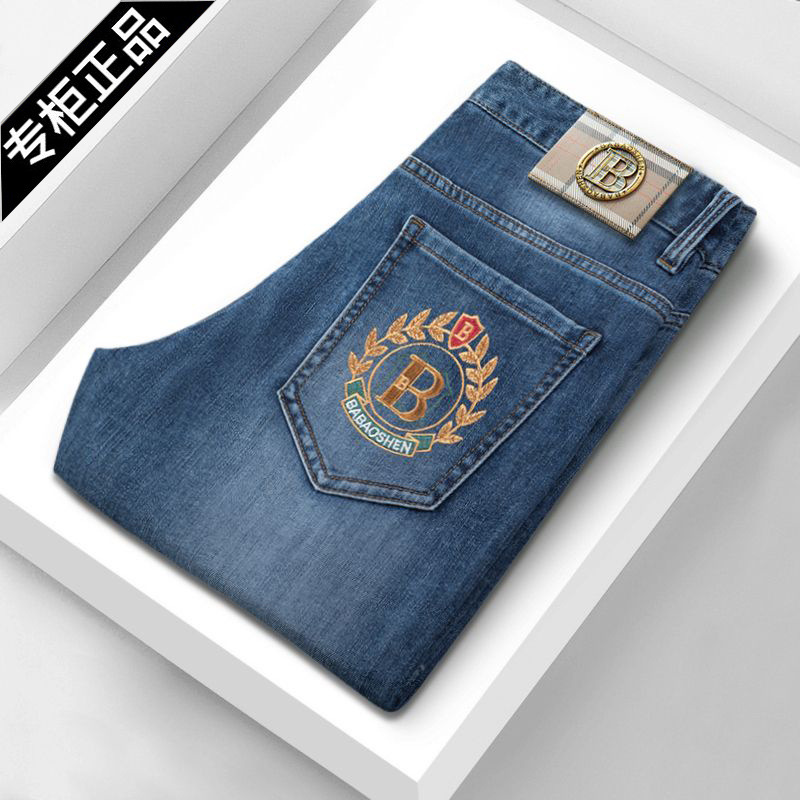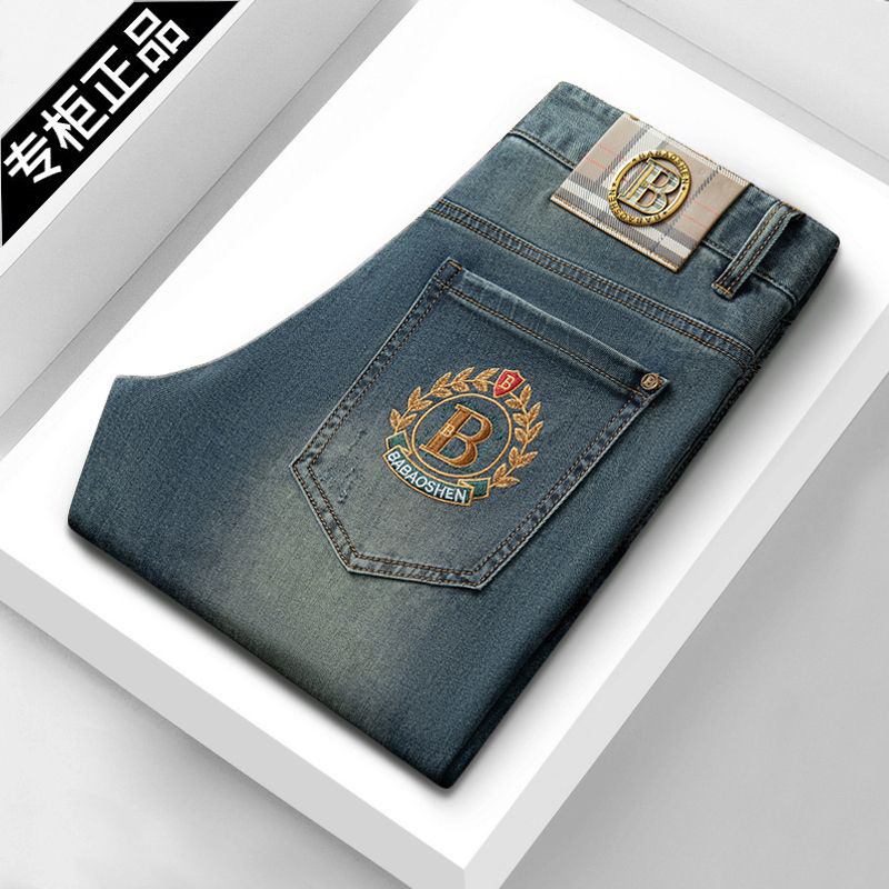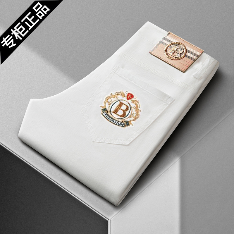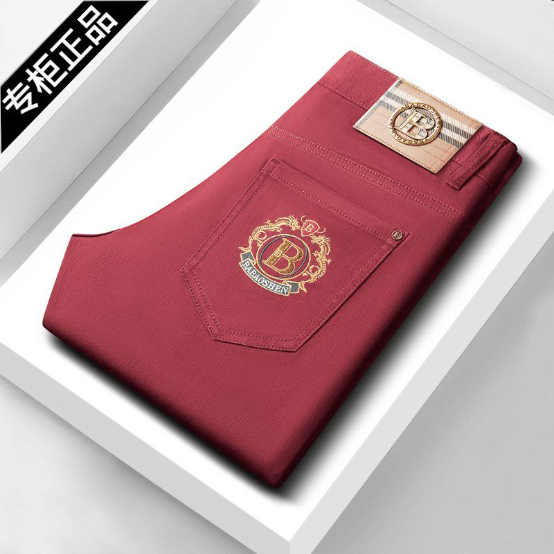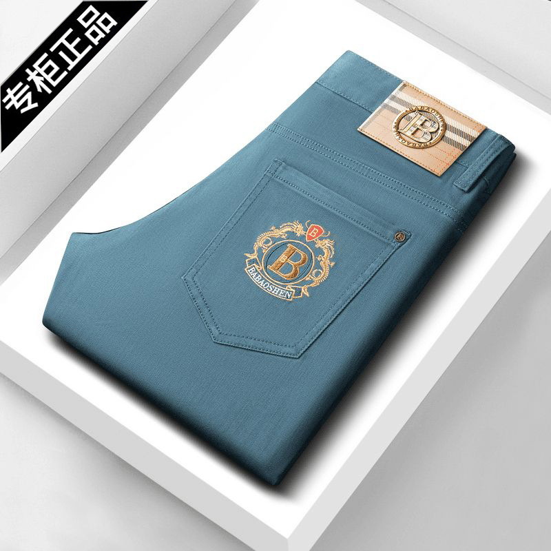 사계절 청바지, 가벼운 럭셔리 컬러풀 코튼 남성용 팬츠, 신축성 있는 슬림핏, 미드라이즈, 스몰 스트레이트 레그, 멋스러운 트렌디 브랜드 자수 팬츠스토어 가기