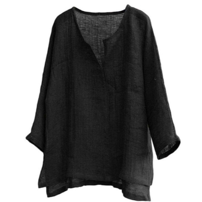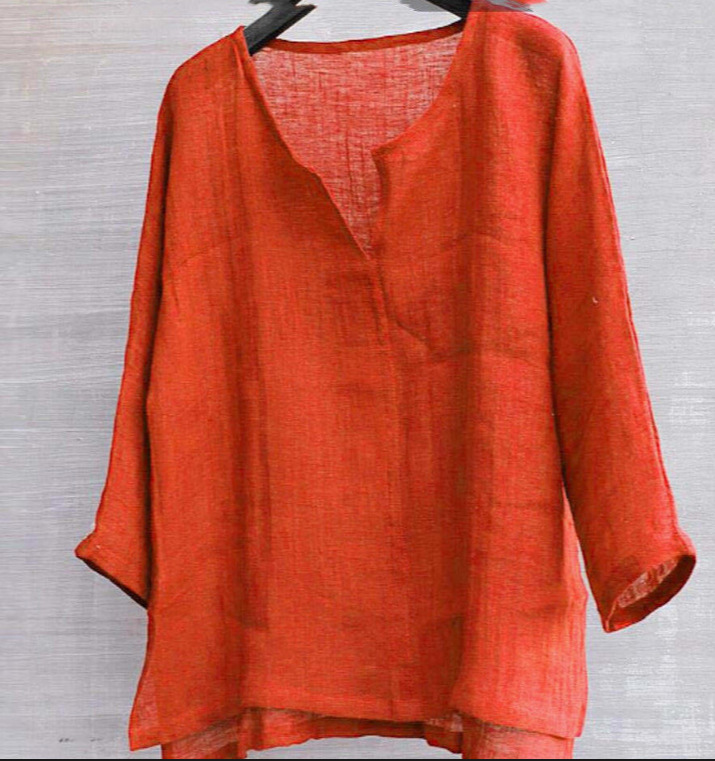 2024 남성과 여성의 청소년 중국 T 스타일 코튼 및 리넨 단색 느슨한 옷 중국 스타일 V 넥 긴 소매 셔츠