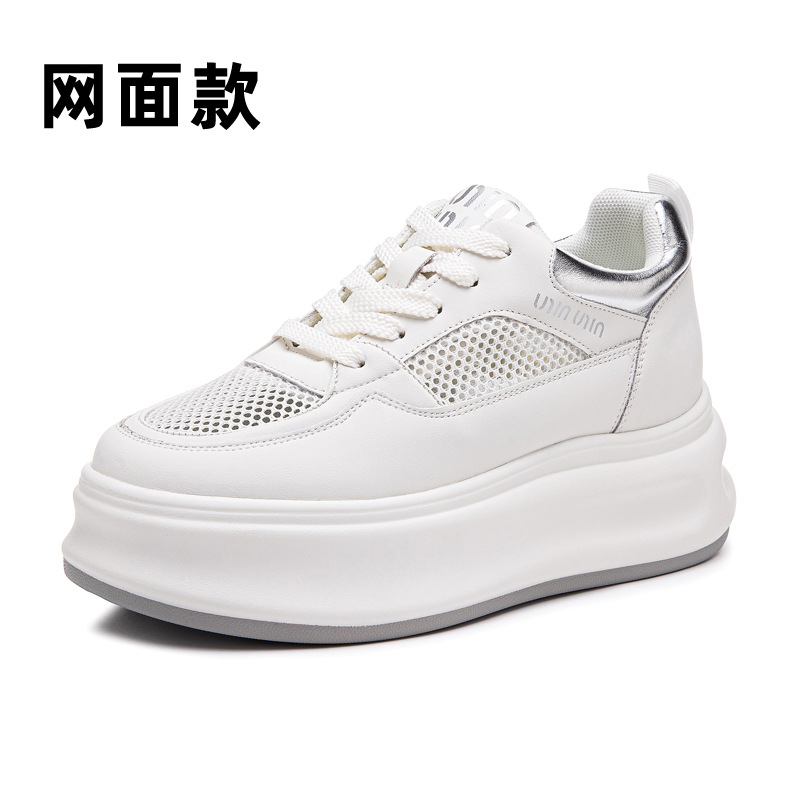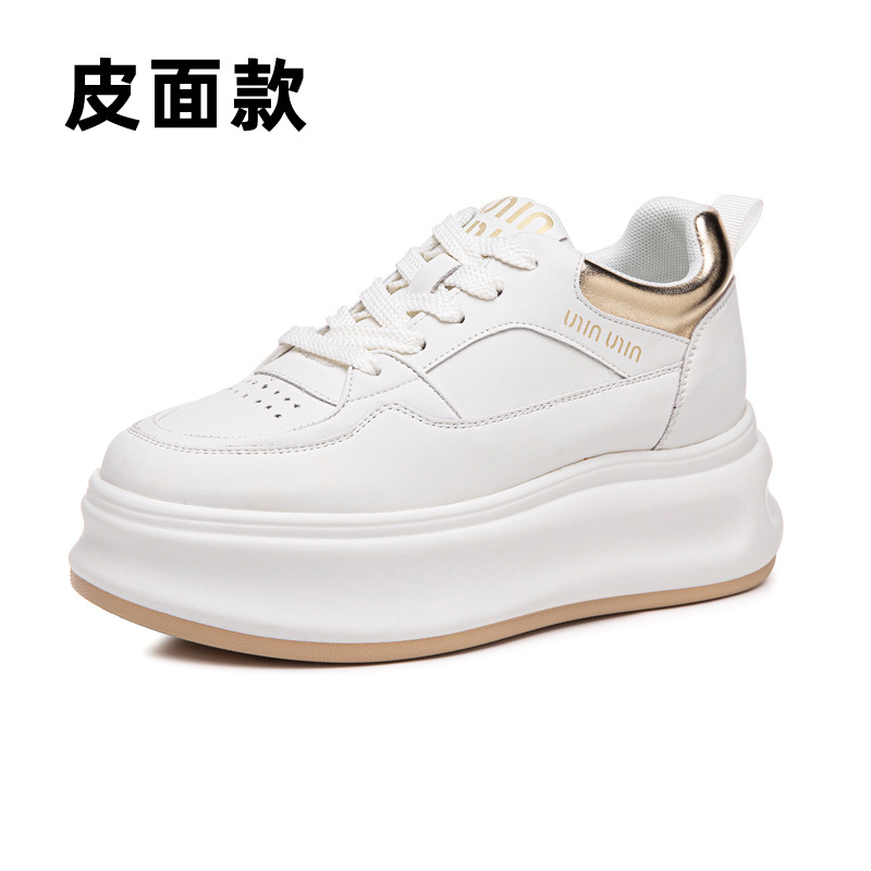 봄 2024 새로운 정품 가죽 내부 높이 증가 흰색 신발 캐주얼 두꺼운 유일한 학생 신발 편안한 패션 여성 신발스토어 가기