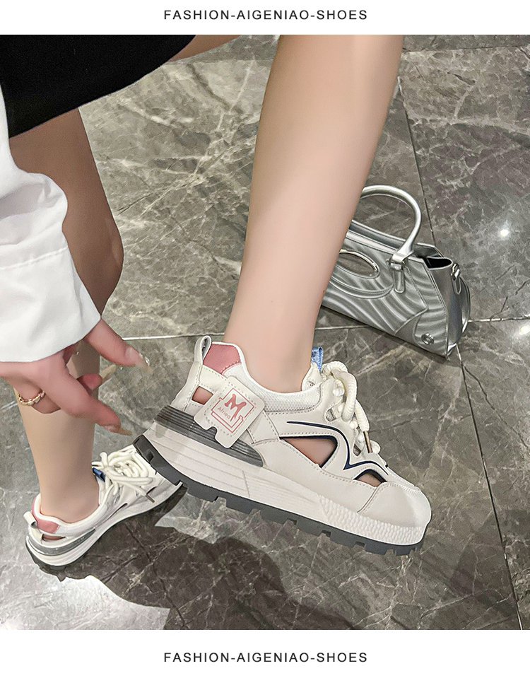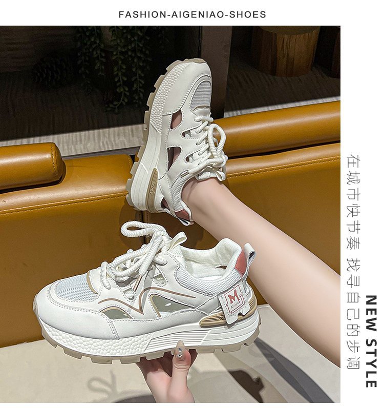 여름 메쉬 통기성 운동화 여성의 2024 새로운 캐주얼 신발 두꺼운 싱글 메쉬 할로우 토레 신발 여성용 샌들스토어 가기