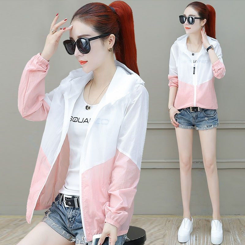 남성과 여성을위한 자외선 차단제 의류 자외선 차단 통기성 여름 얇은 색상 매칭 안티 태양 세트 야외 스포츠 윈드 브레이커 정사이즈 코트
