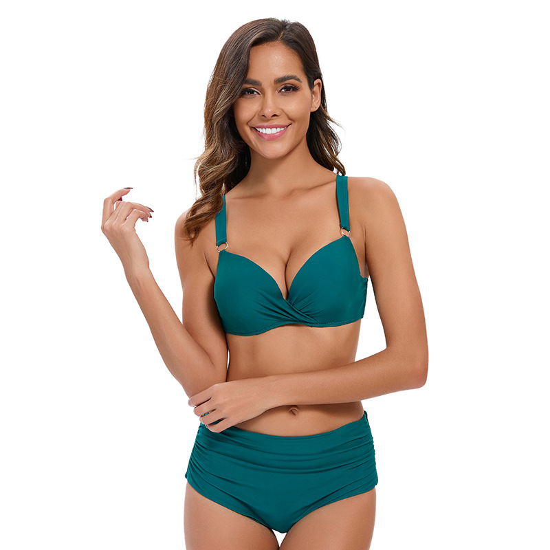 국경 간 유럽과 미국의 새로운 단색 비키니 대외 무역 섹시한 백리스 수영복 삼각형 높은 허리 비키니 주름 수영복