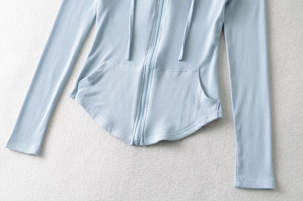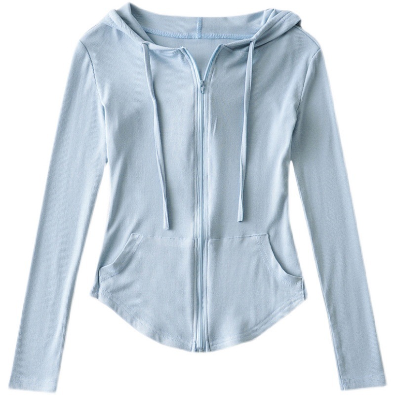 틈새 스파이스 걸스 스포티 스타일 지퍼 카디건 재킷 여성의 여름 머리 곡선 슬림 핏 후드 드로우 스트링 태양 보호 탑