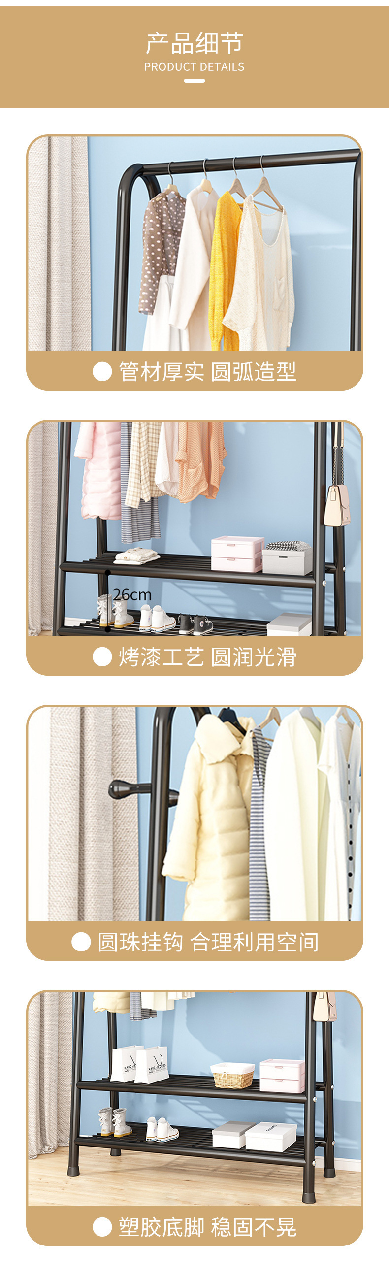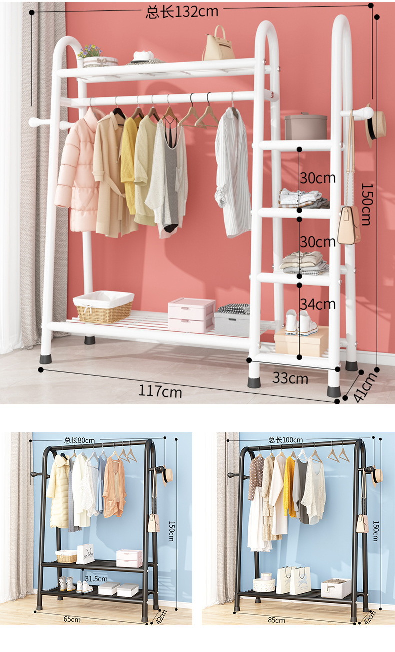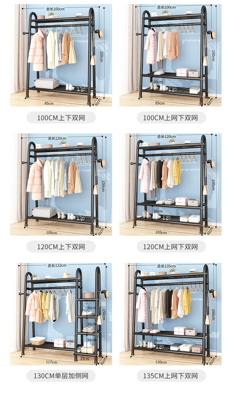 더블 레이어 코트 랙 침실 라이트 럭셔리 옷걸이 이동식 실내 가정용 거실 랙 간단한 바닥 옷걸이스토어 가기