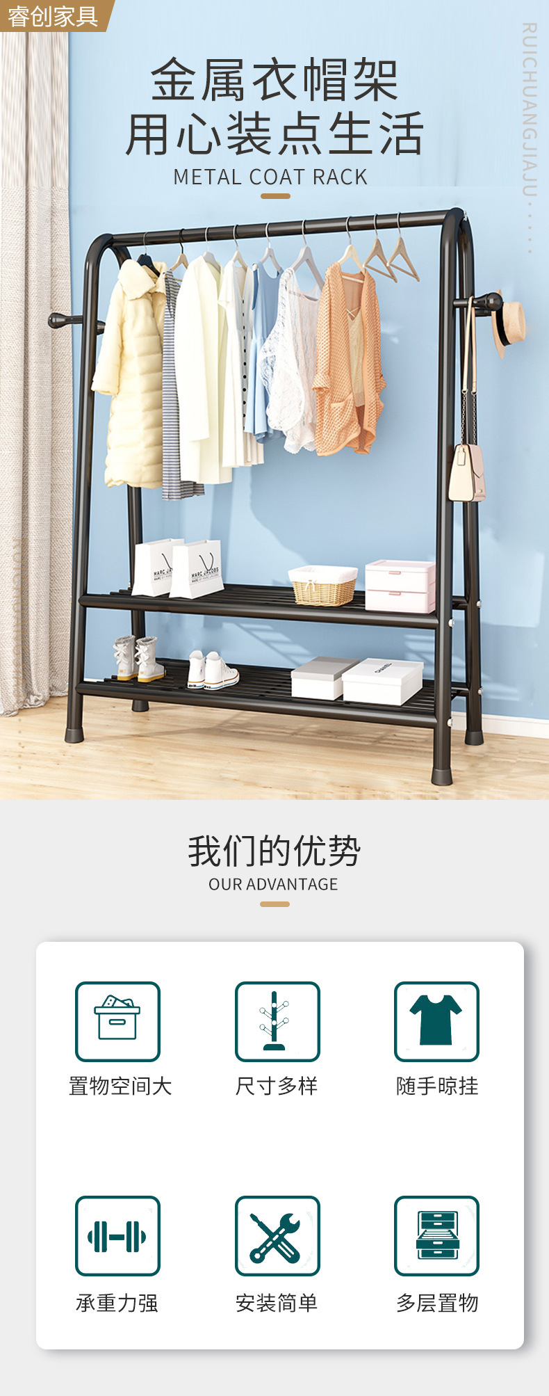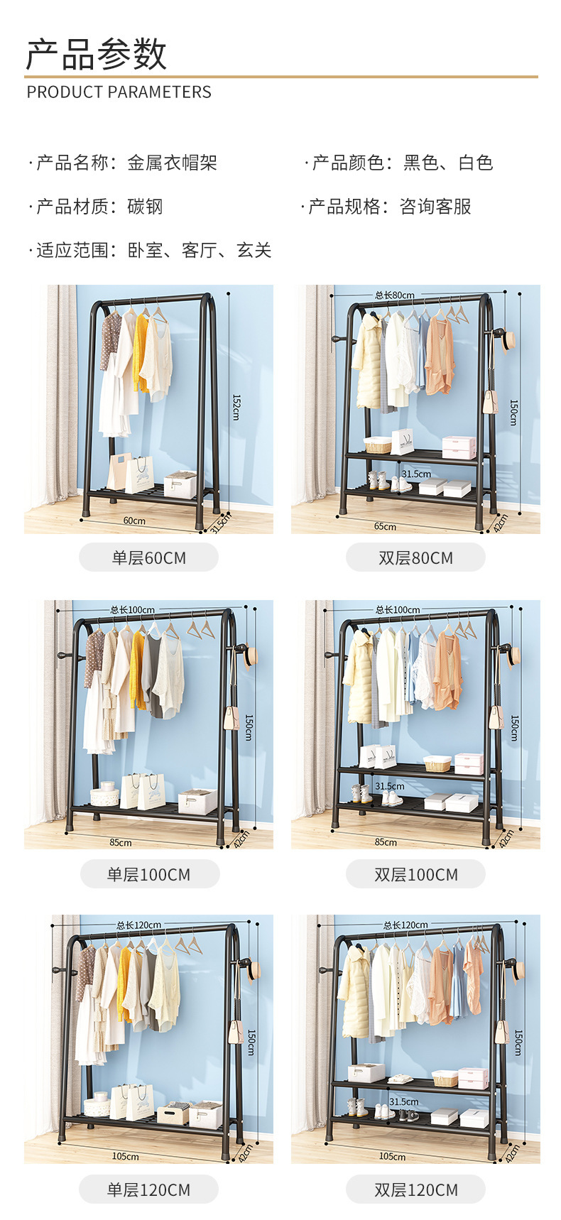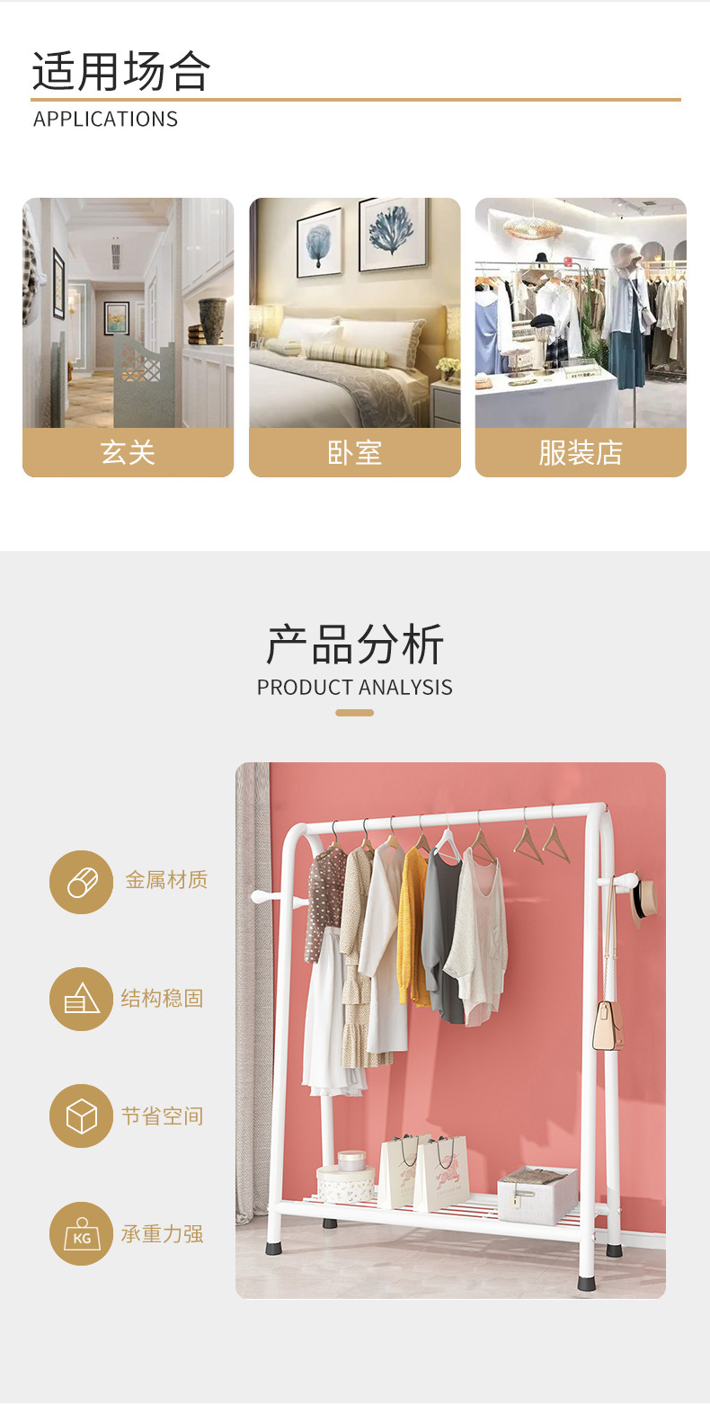 더블 레이어 코트 랙 침실 라이트 럭셔리 옷걸이 이동식 실내 가정용 거실 랙 간단한 바닥 옷걸이