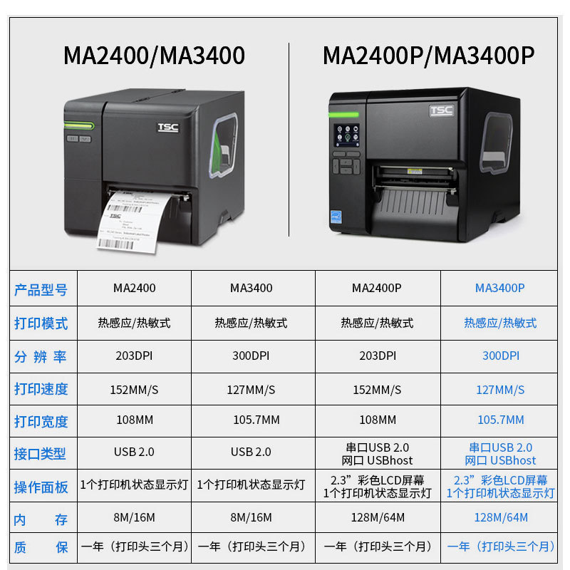 TSC MA2400/3400 MF2400/3400 산업 고속 열 전달 열 라벨 프린터