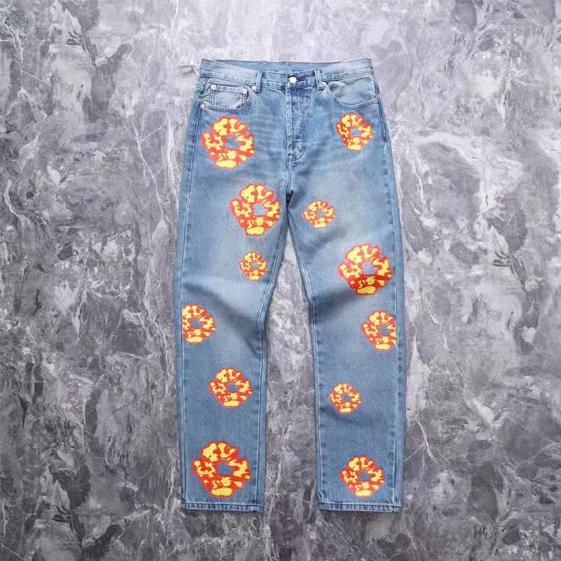 火焰木棉花印花牛仔裤DENIM TEARS侃爷同款情侣男女长裤直筒裤ins