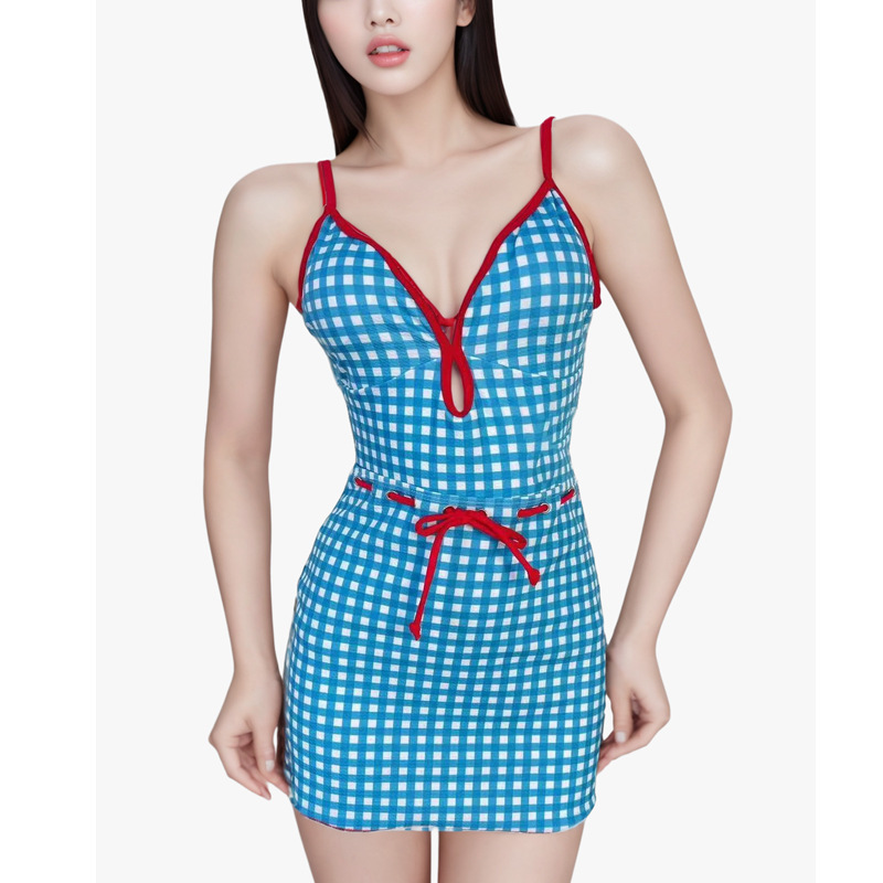 2024 ins 스타일 프랑스 복고풍 달콤한 소녀 수영복 여성 보수적 인 원피스 작은 가슴 크로스 국경 도매 수영복스토어 가기