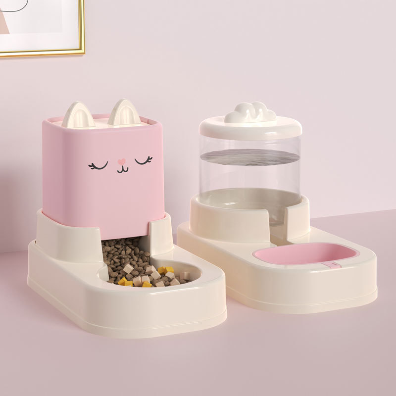 반려동물 자동 급식기 겸용 물통, 고양이 물그릇, 고양이 급수기, 무선 무습식 개밥그릇