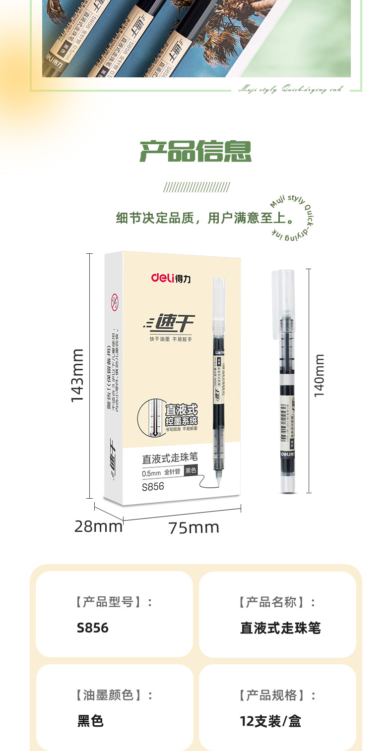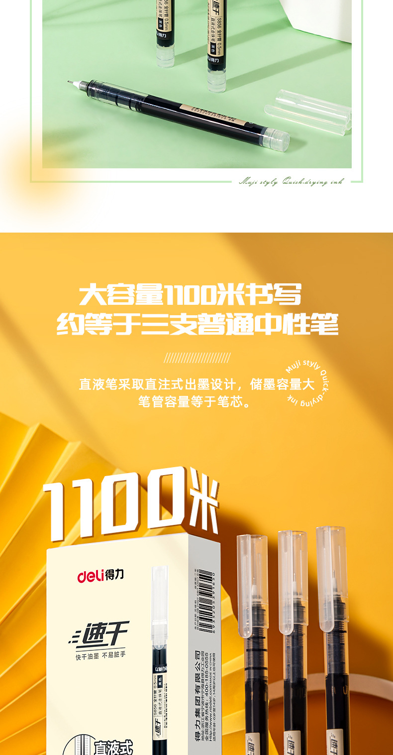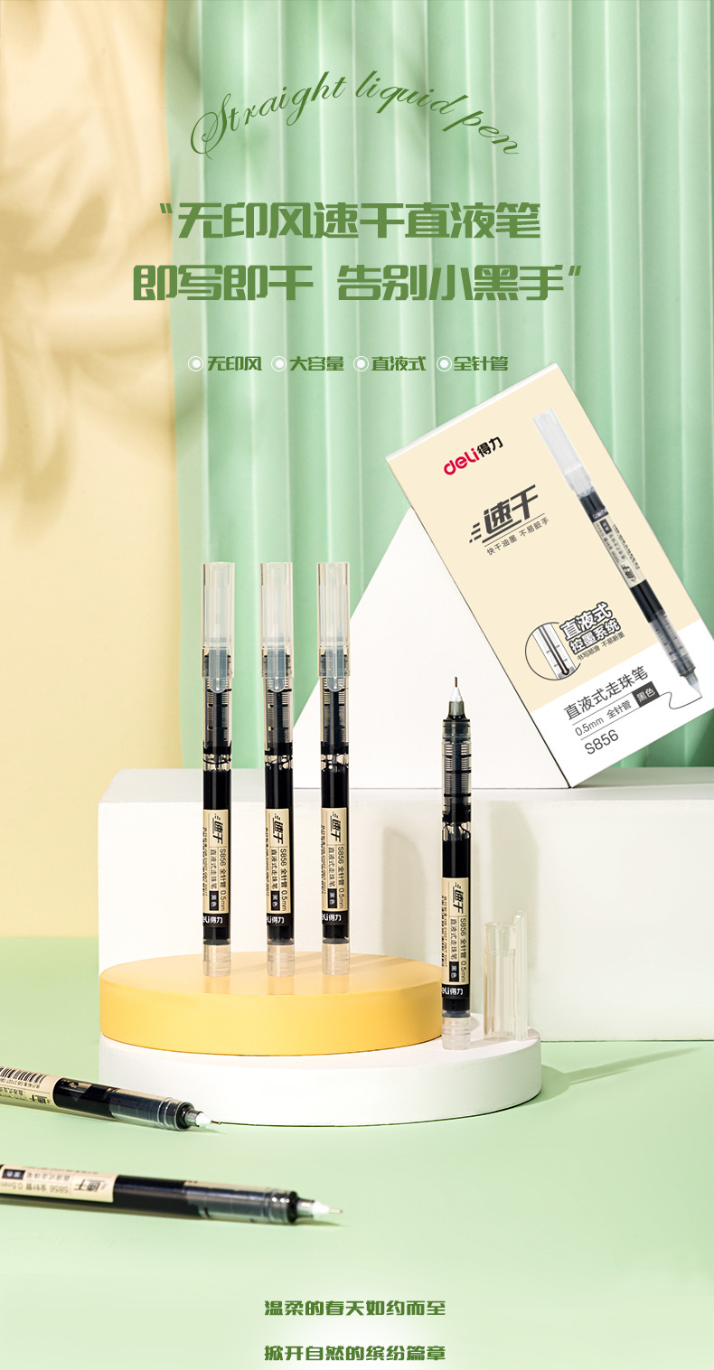 델리 문구 직접 액체 볼 펜 블랙 젤 펜 0.5mm 바늘 튜브 빠른 건조 직접 액체 사무실 사인 펜
