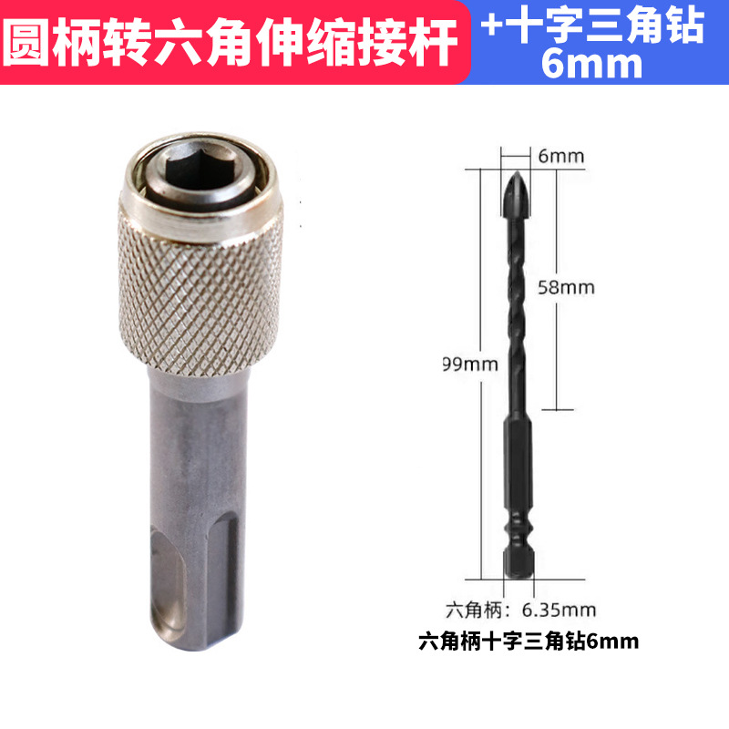 • SDS 원형 핸들 텔레스코픽 연장 로드 + 블랙 크로스 삼각형 드릴 비트 6mm