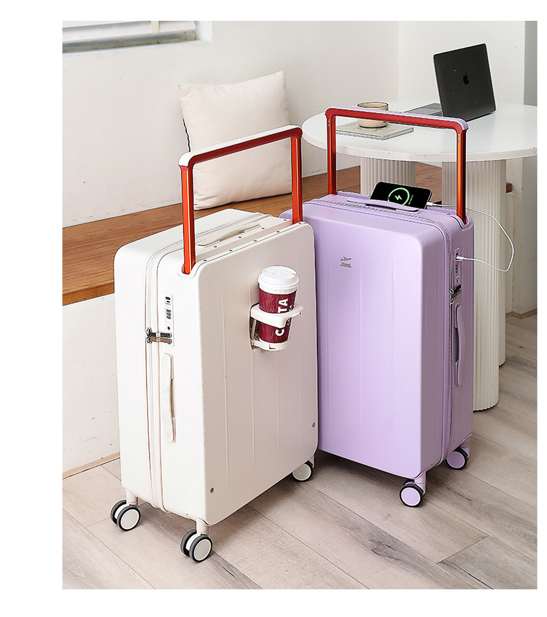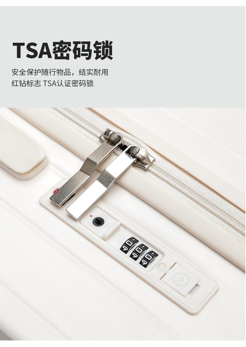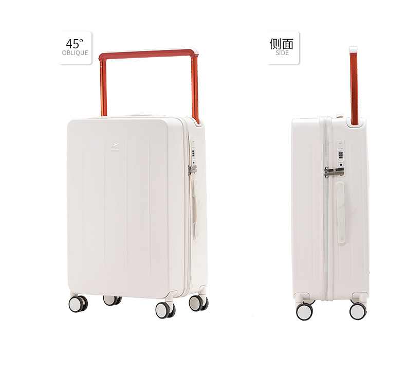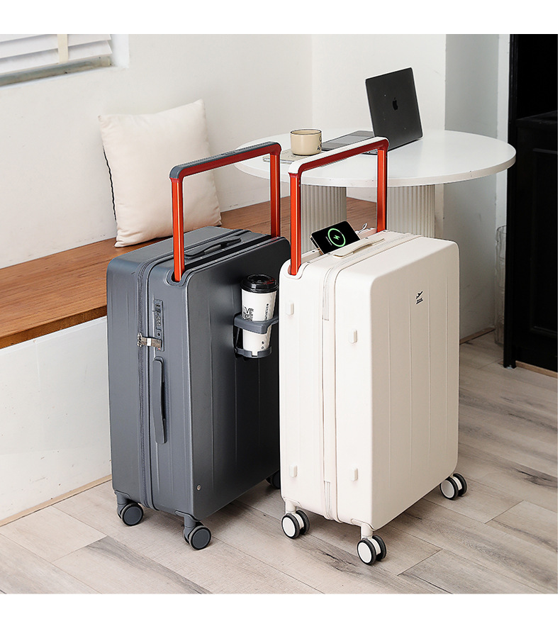 넓은 손잡이가 있는 지퍼 여행가방, 비밀번호 잠금 기능이 있는 기내용 캐리어, 회전 바퀴가 달린 여행가방, 가죽 여행가방, 휴대용 TSA 잠금장치가 있는 가방