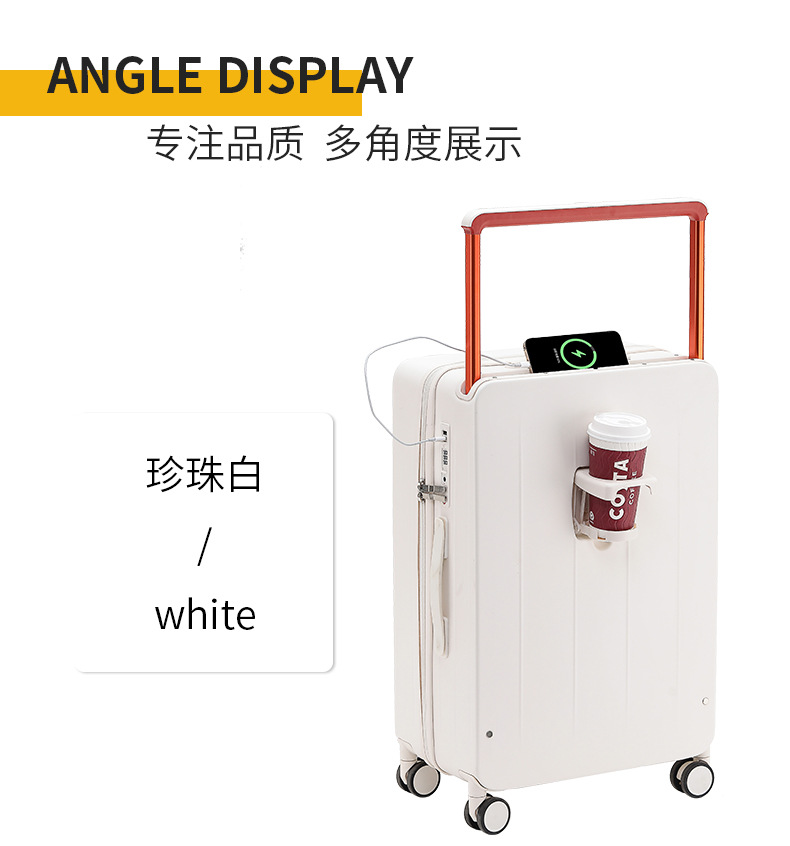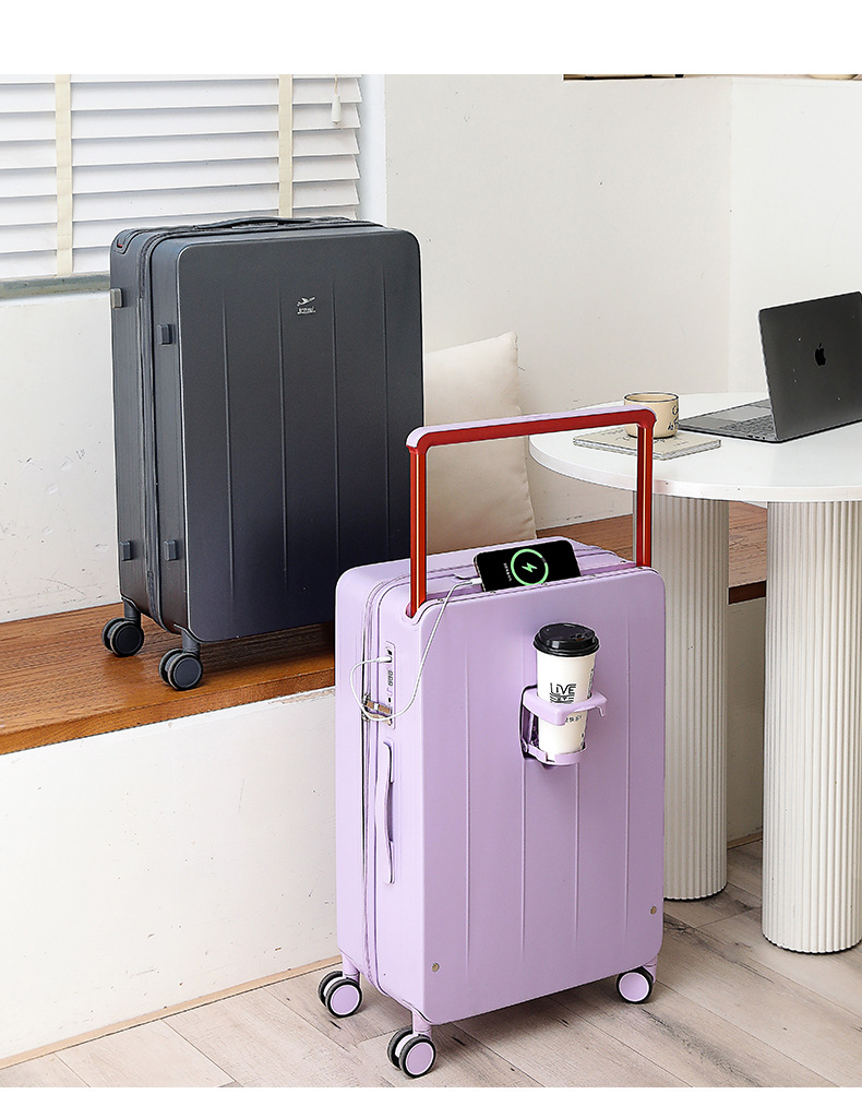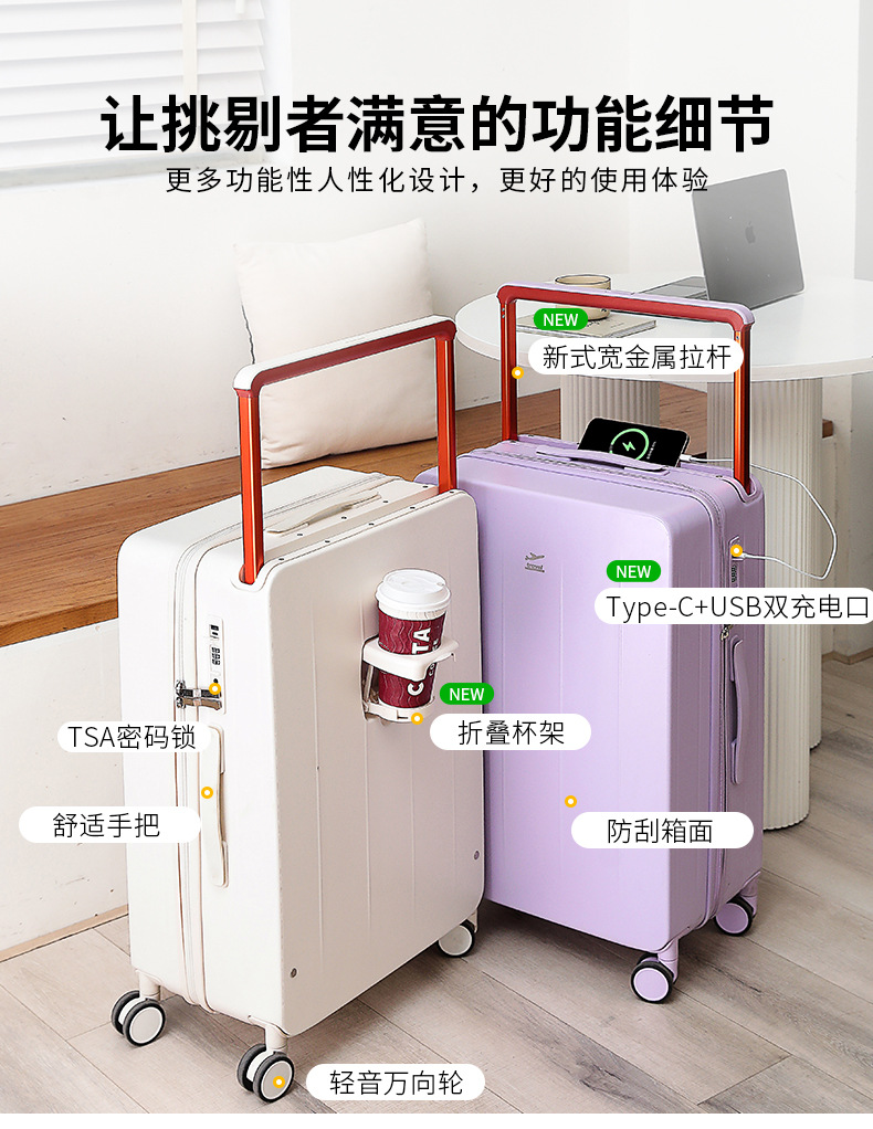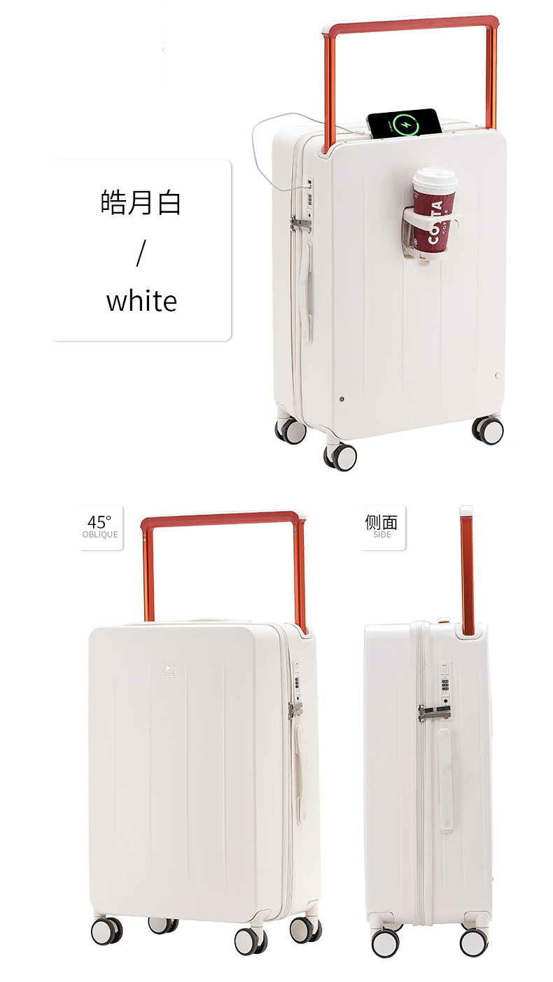 넓은 손잡이가 있는 지퍼 여행가방, 비밀번호 잠금 기능이 있는 기내용 캐리어, 회전 바퀴가 달린 여행가방, 가죽 여행가방, 휴대용 TSA 잠금장치가 있는 가방
