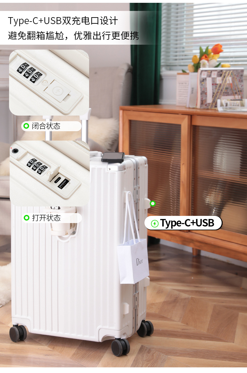 넓은 손잡이가 있는 지퍼 여행가방, 비밀번호 잠금 기능이 있는 기내용 캐리어, 회전 바퀴가 달린 여행가방, 가죽 여행가방, 휴대용 TSA 잠금장치가 있는 가방스토어 가기