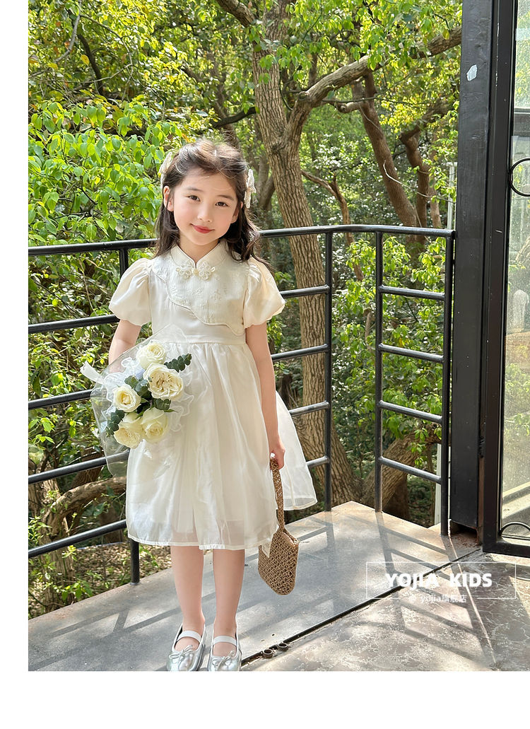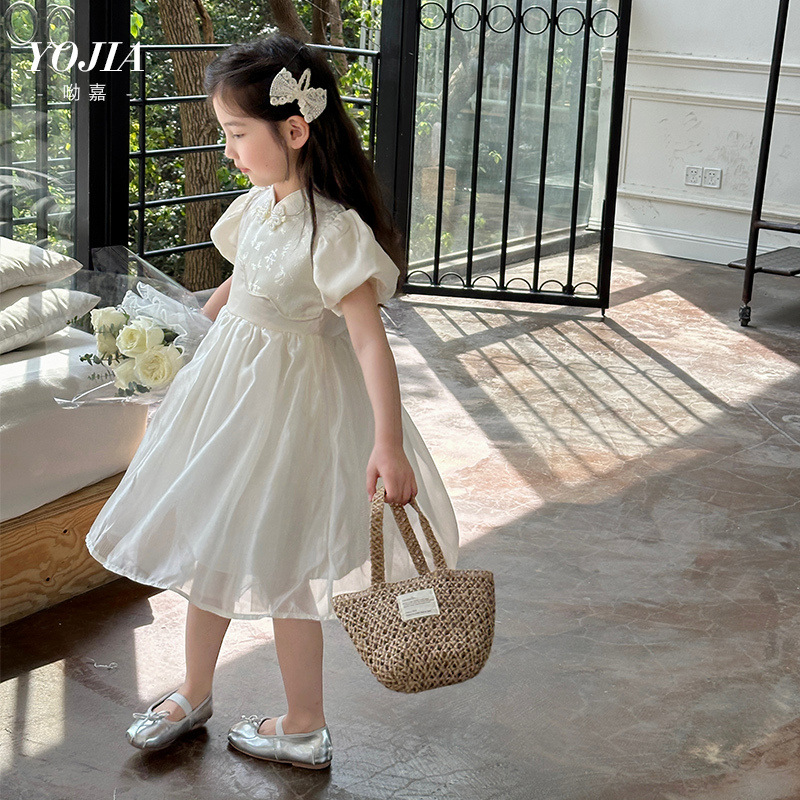 YOJIA 어린이 새 중국 청삼 스커트 여름 2024 새로운 서양식 국가 스타일 공주 원피스 여자 원피스