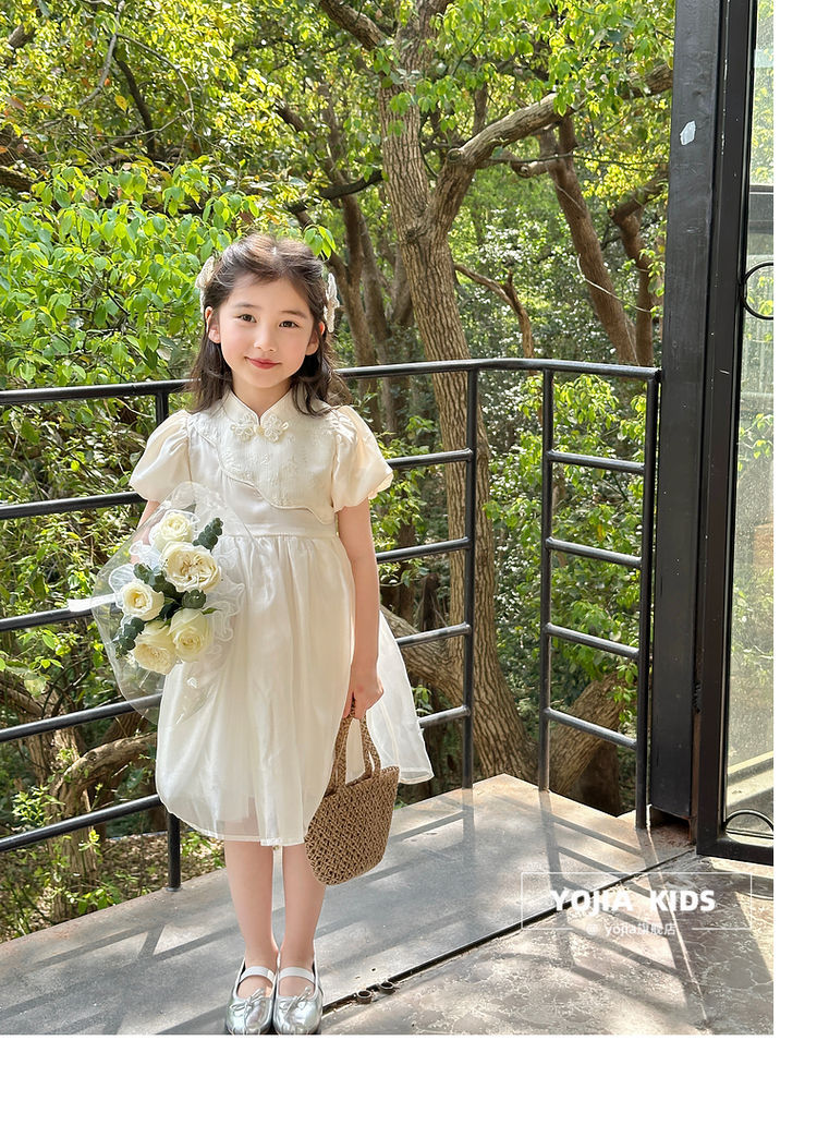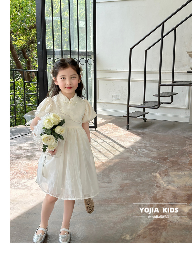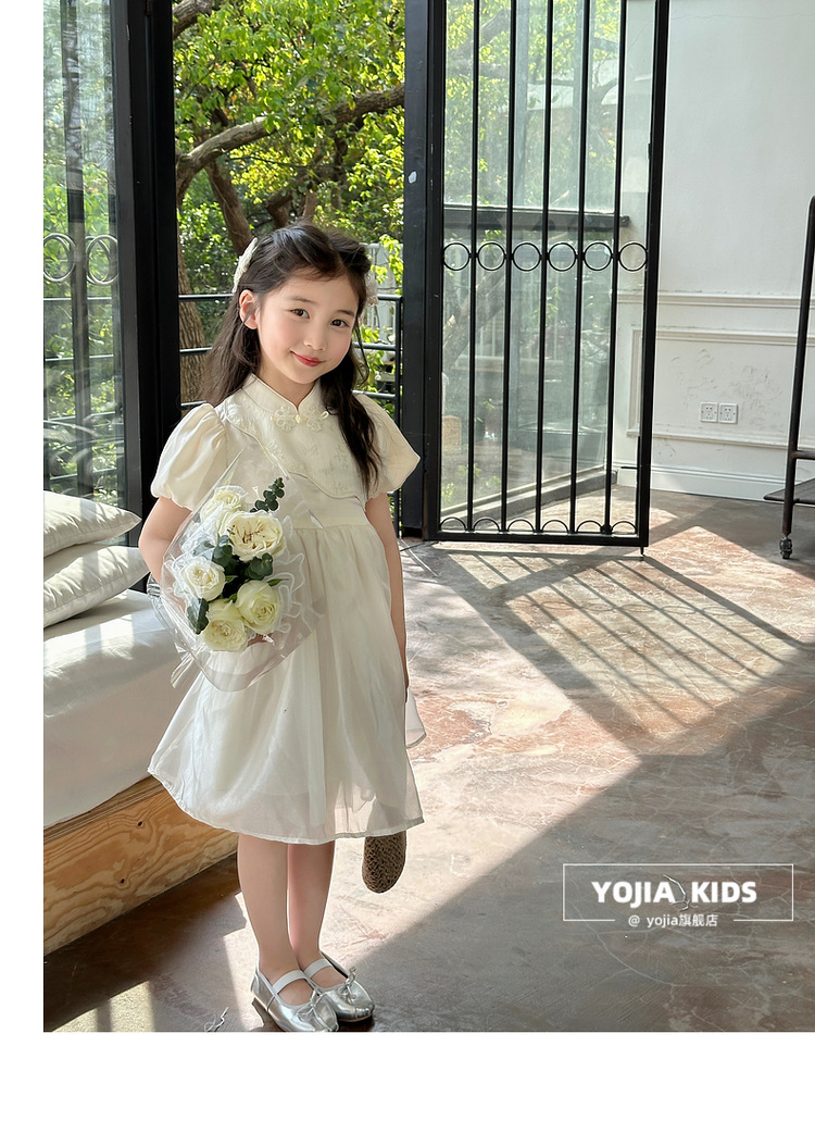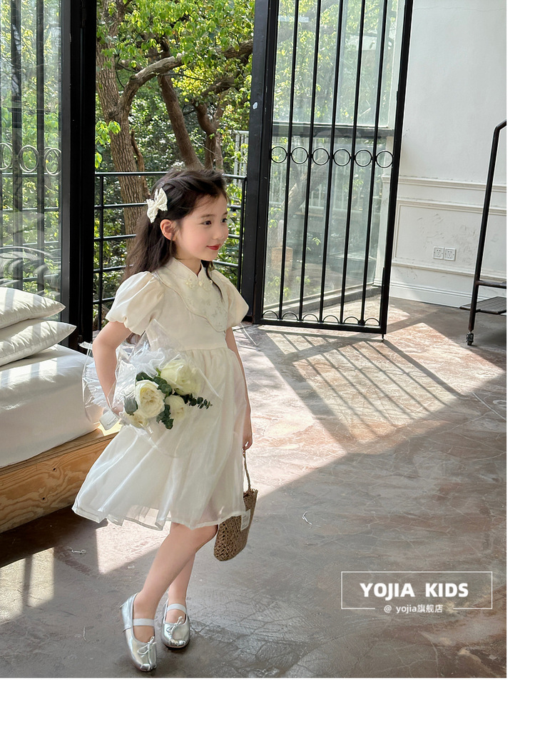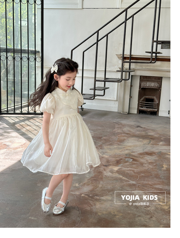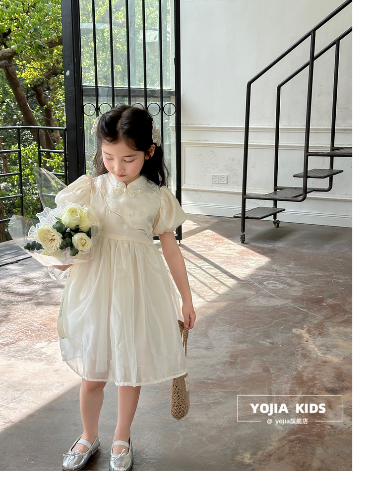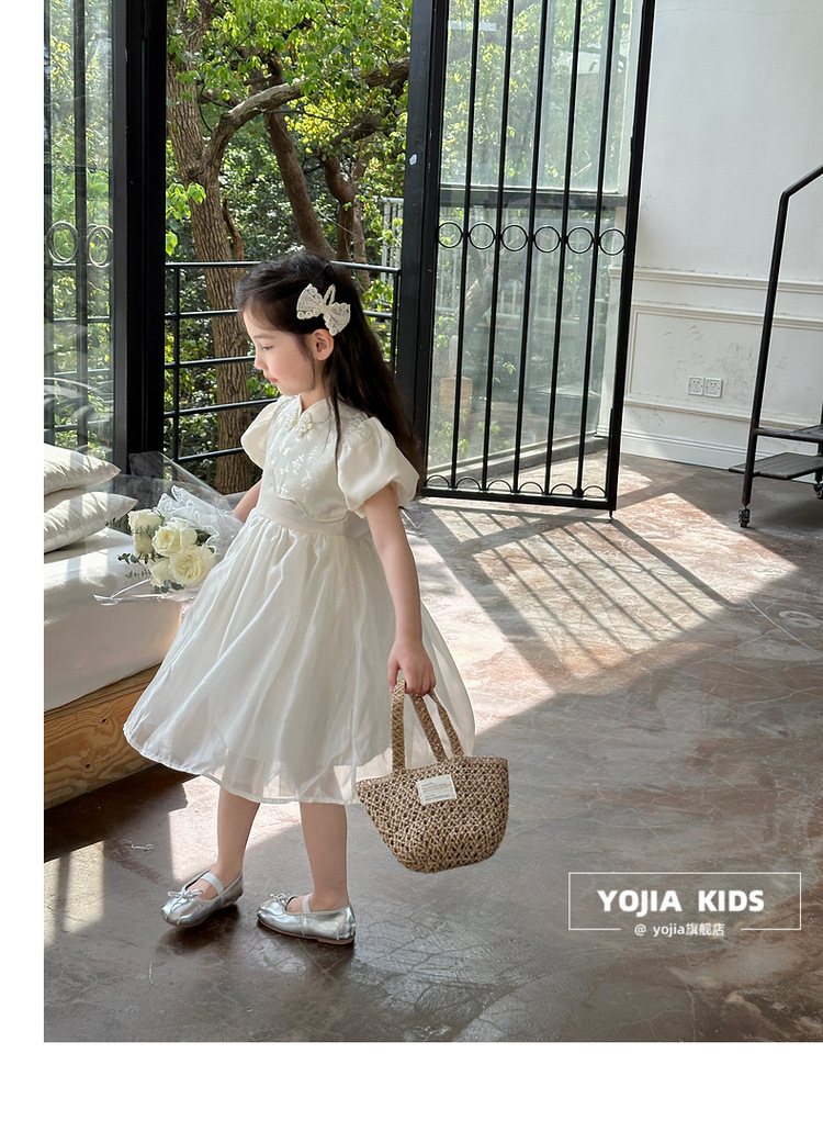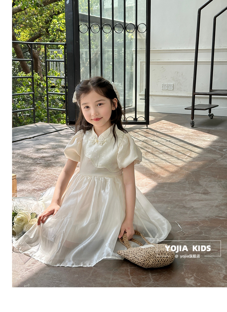 YOJIA 어린이 새 중국 청삼 스커트 여름 2024 새로운 서양식 국가 스타일 공주 원피스 여자 원피스스토어 가기