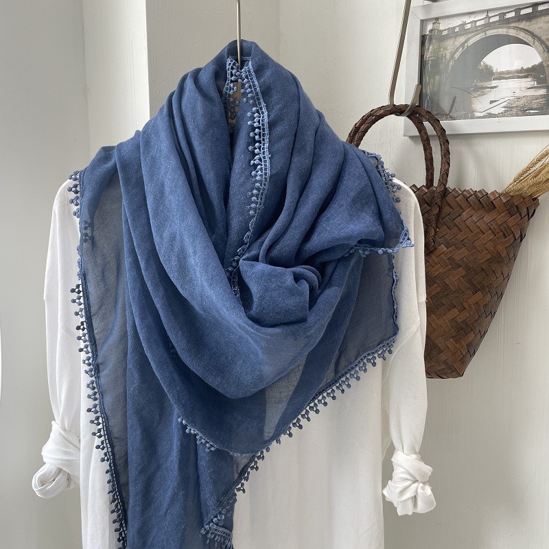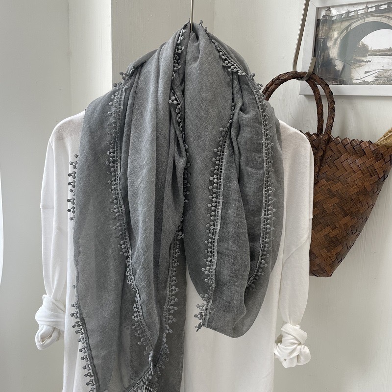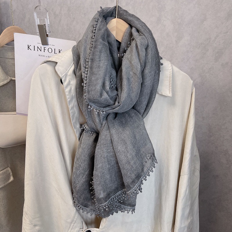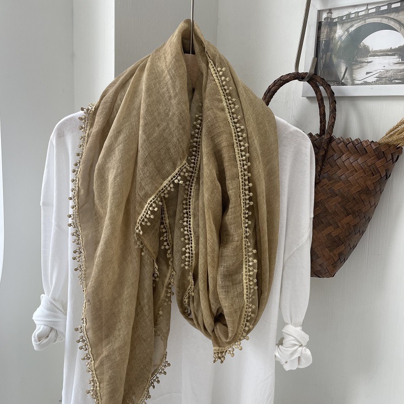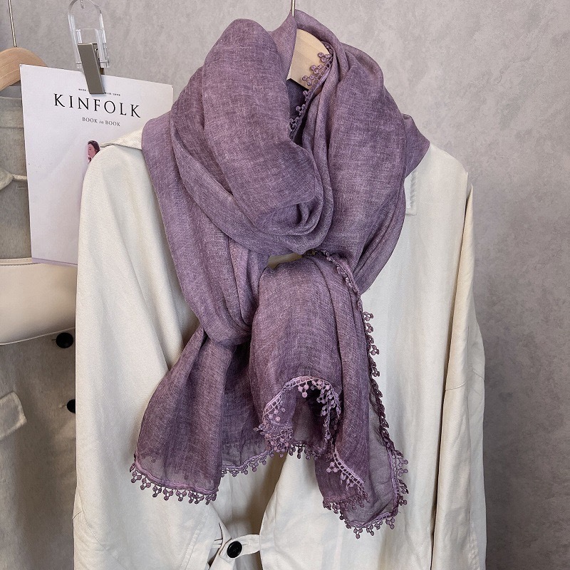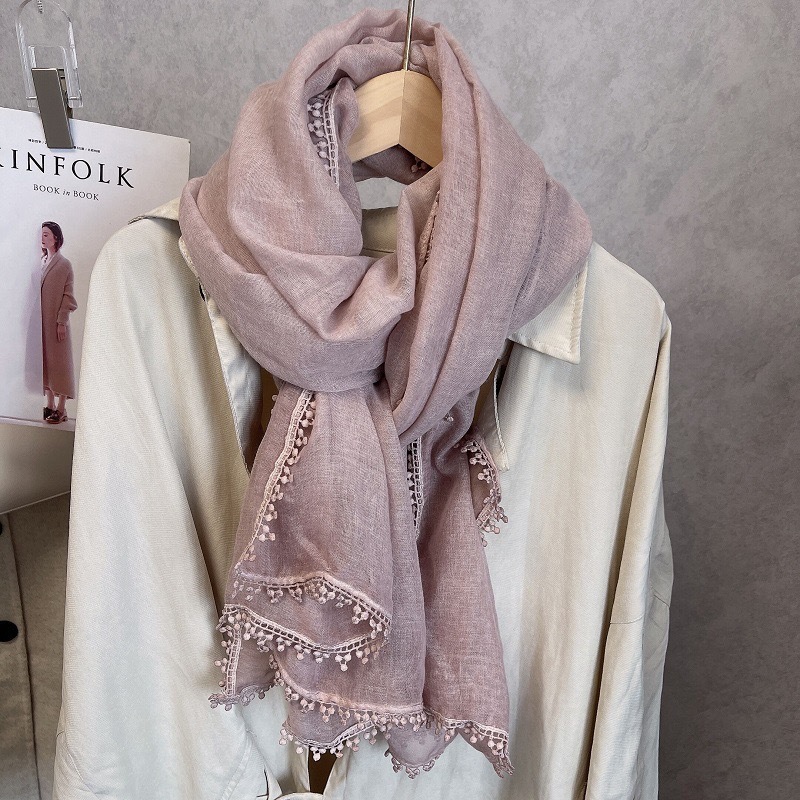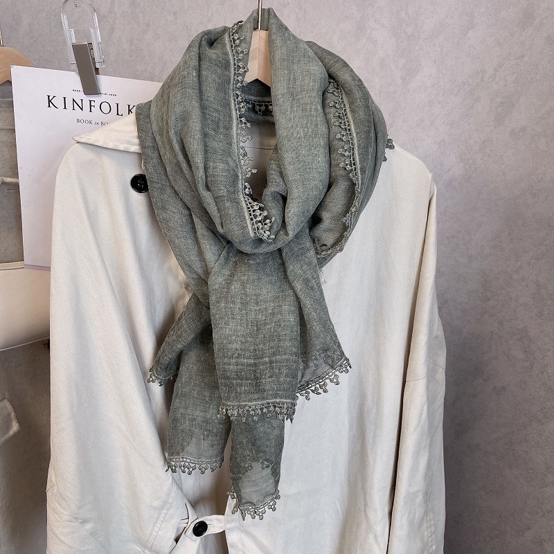 2024 신상 봄 가을 레이스 얇은 면마 스카프 여성 고급 여름 자외선 차단 숄 다용도 문예 스타일 목도리