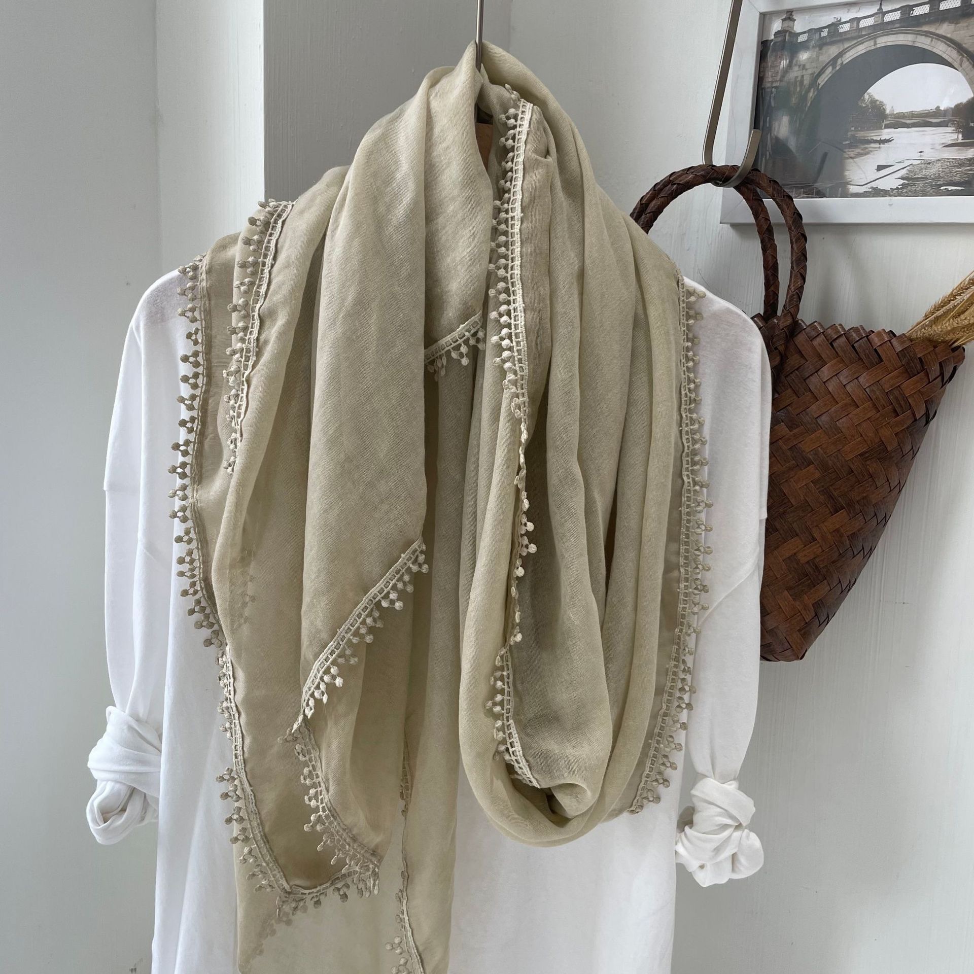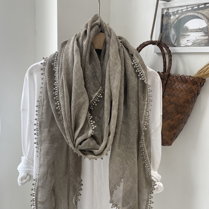 2024 신상 봄 가을 레이스 얇은 면마 스카프 여성 고급 여름 자외선 차단 숄 다용도 문예 스타일 목도리스토어 가기