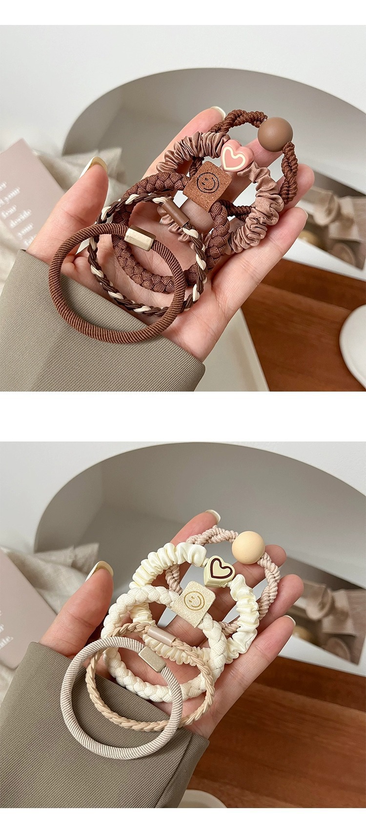 • 스마일리 페이스 트위스트 더블 브레이드 혼합 컬러 5팩