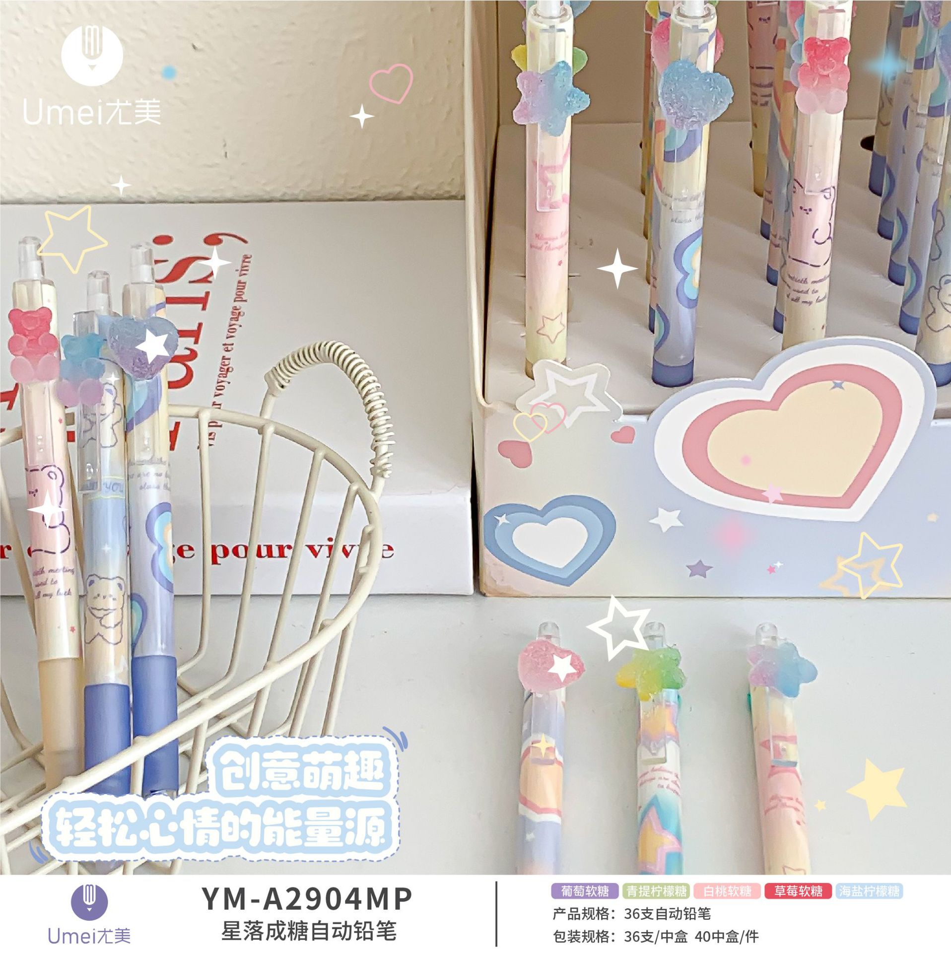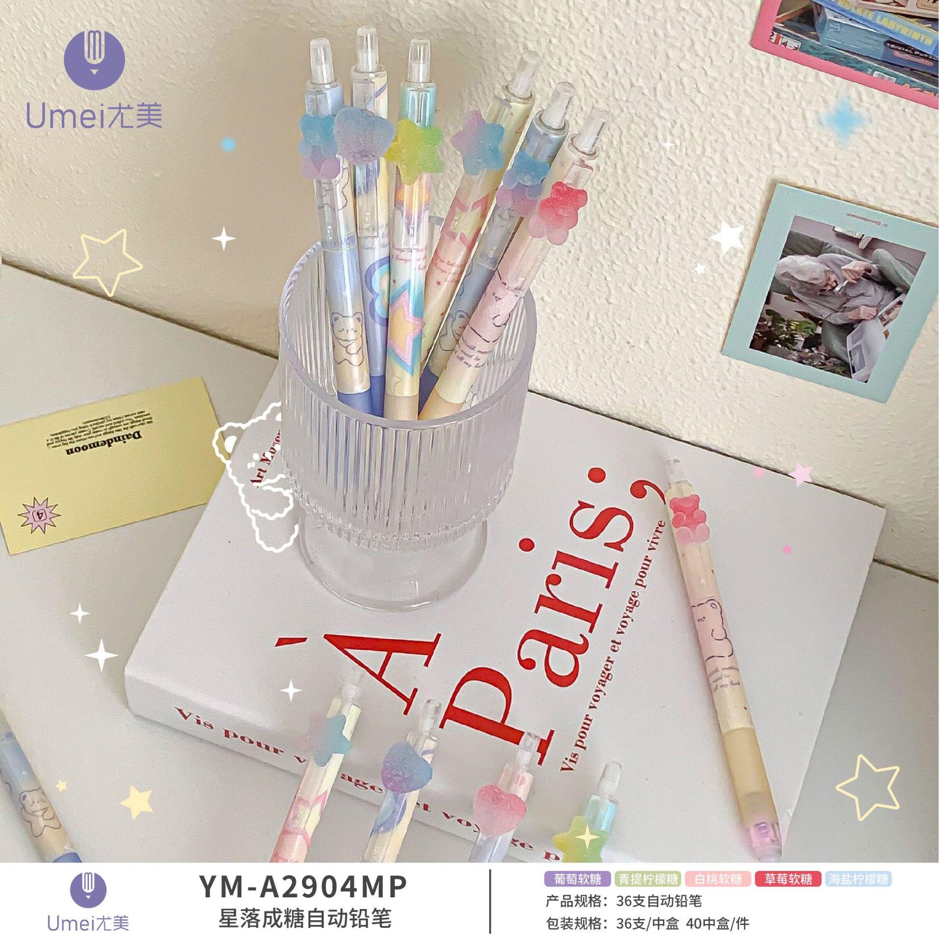 Youmei 2904MP 높은 색상 가치 높은 질감 스타 완료 설탕 절묘한 패치 학생 비 절단 자동 활동 연필스토어 가기