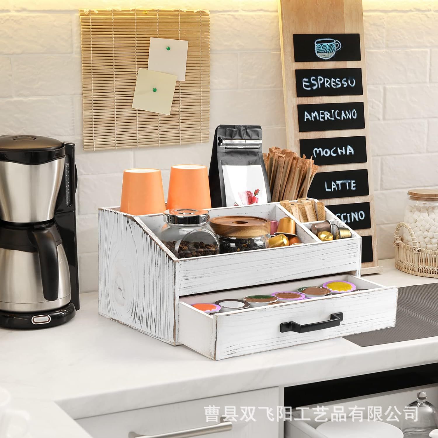 나무 데스크탑 차 가방 설탕 가방 저장 상자 커피 캡슐 저장 상자 서랍 일회용 종이 컵 식품 나무 상자스토어 가기