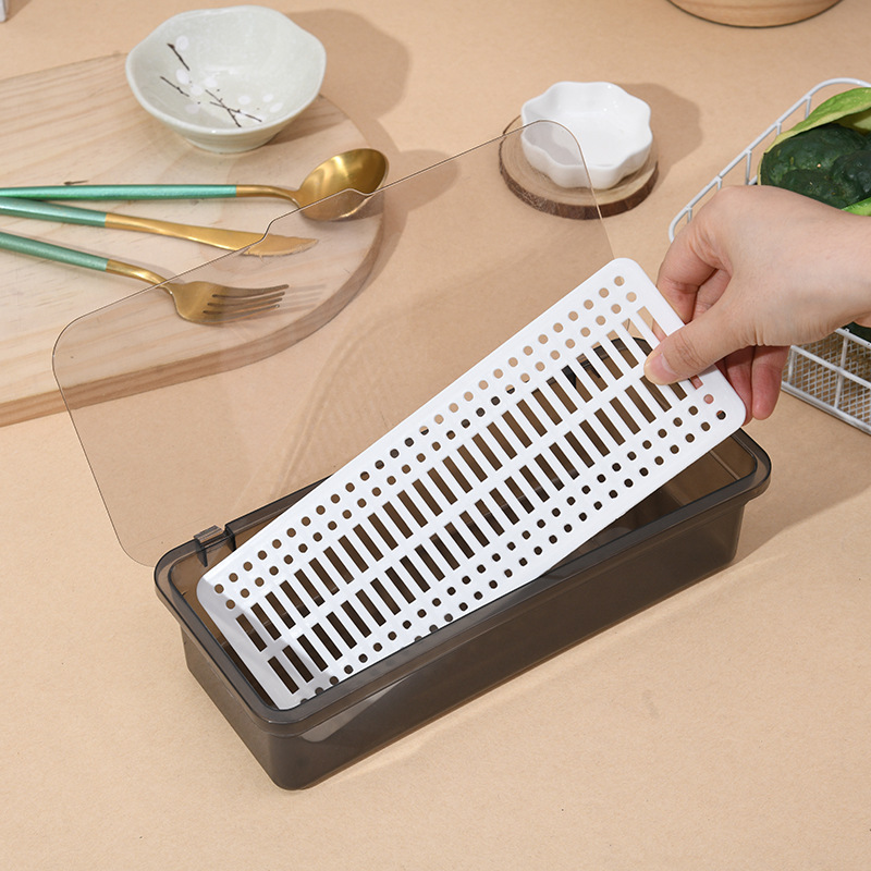 간단한 보관 건조 상자 뷰티 메이크업 도구 저장 상자 메이크업 브러시 투명 방진 뚜껑 대용량 솔리드 컬러 재고
