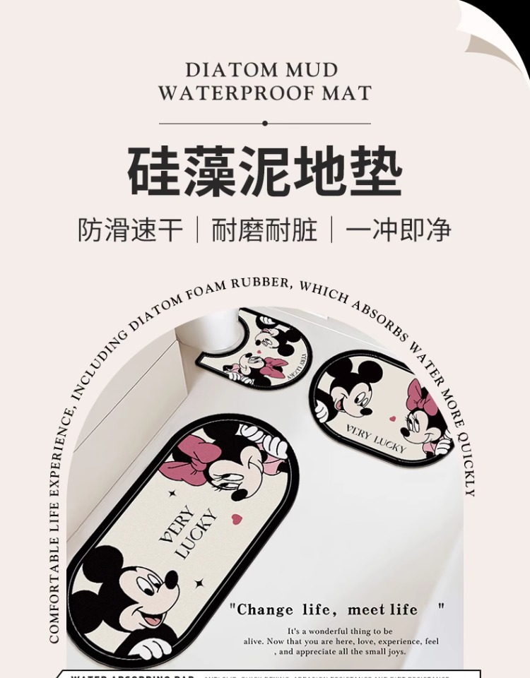 만화 미키 디 아톰 진흙 흡수성 바닥 매트 가정용 화장실 욕실 U 자형 미끄럼 방지 풋 매트 세트 먼지 방지 및 내마모성스토어 가기