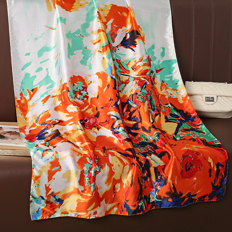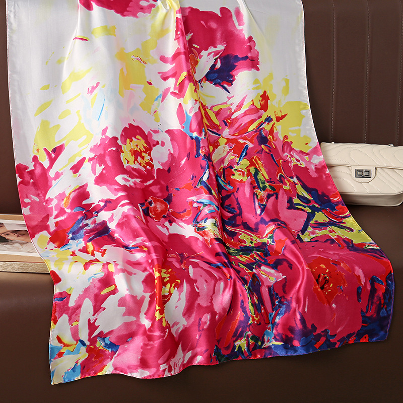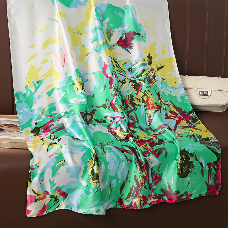 한국 스타일의 예술적 색 추상 유화 아름다운 브로케이드 긴 얇은 실크 스카프 일반 우아한 여성 목도리 에어컨 룸