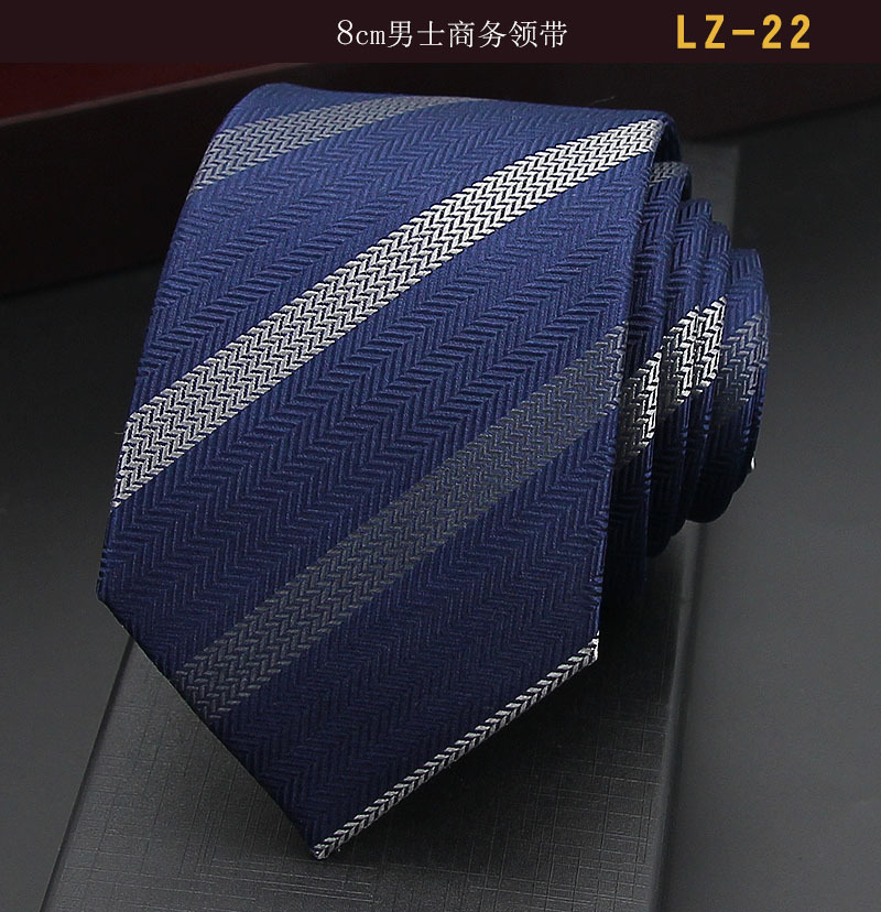 뽕나무 실크 수제 비즈니스 정장용 블루 스트라이프 넥타이 8CM 남성 웨딩 정장 자카드 넥타이 도매
