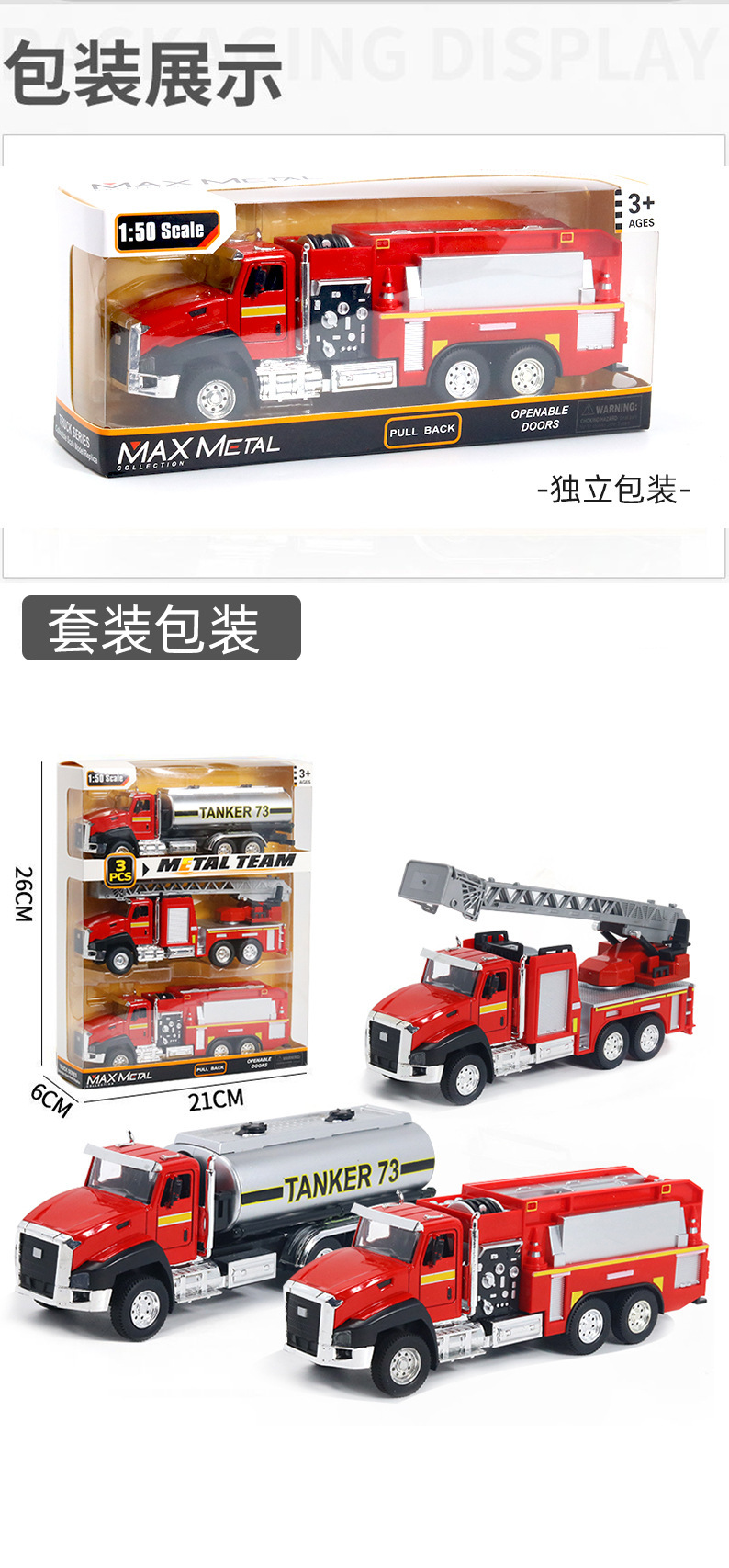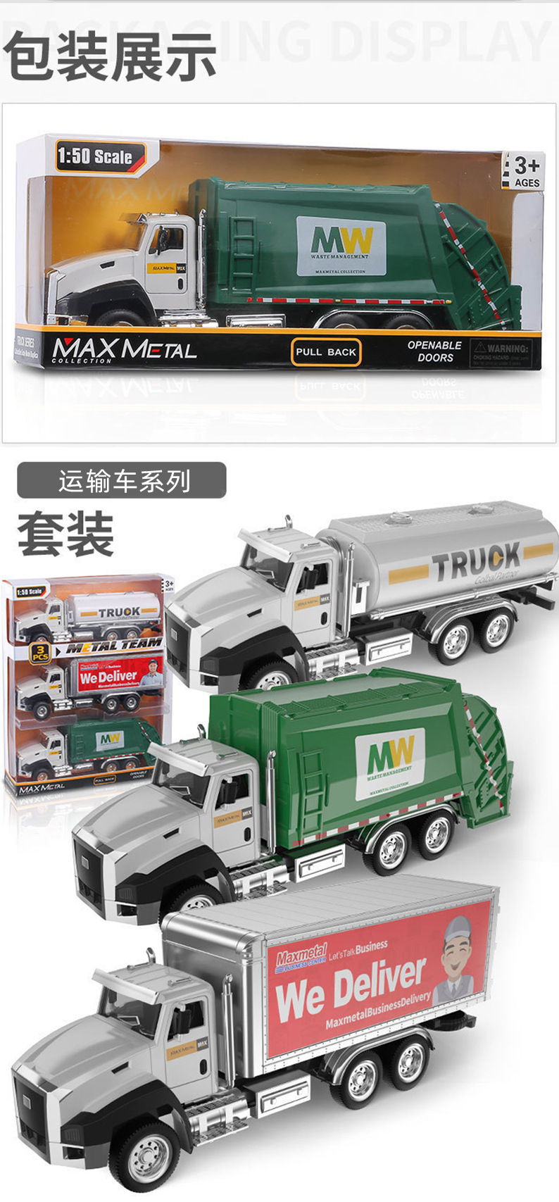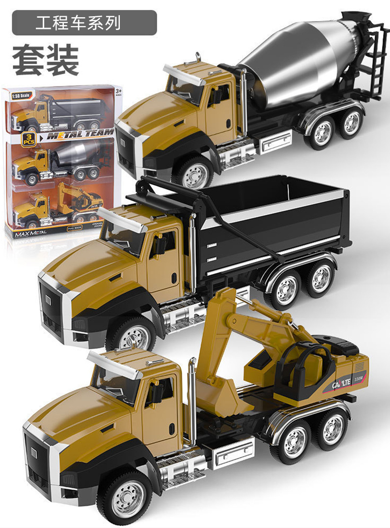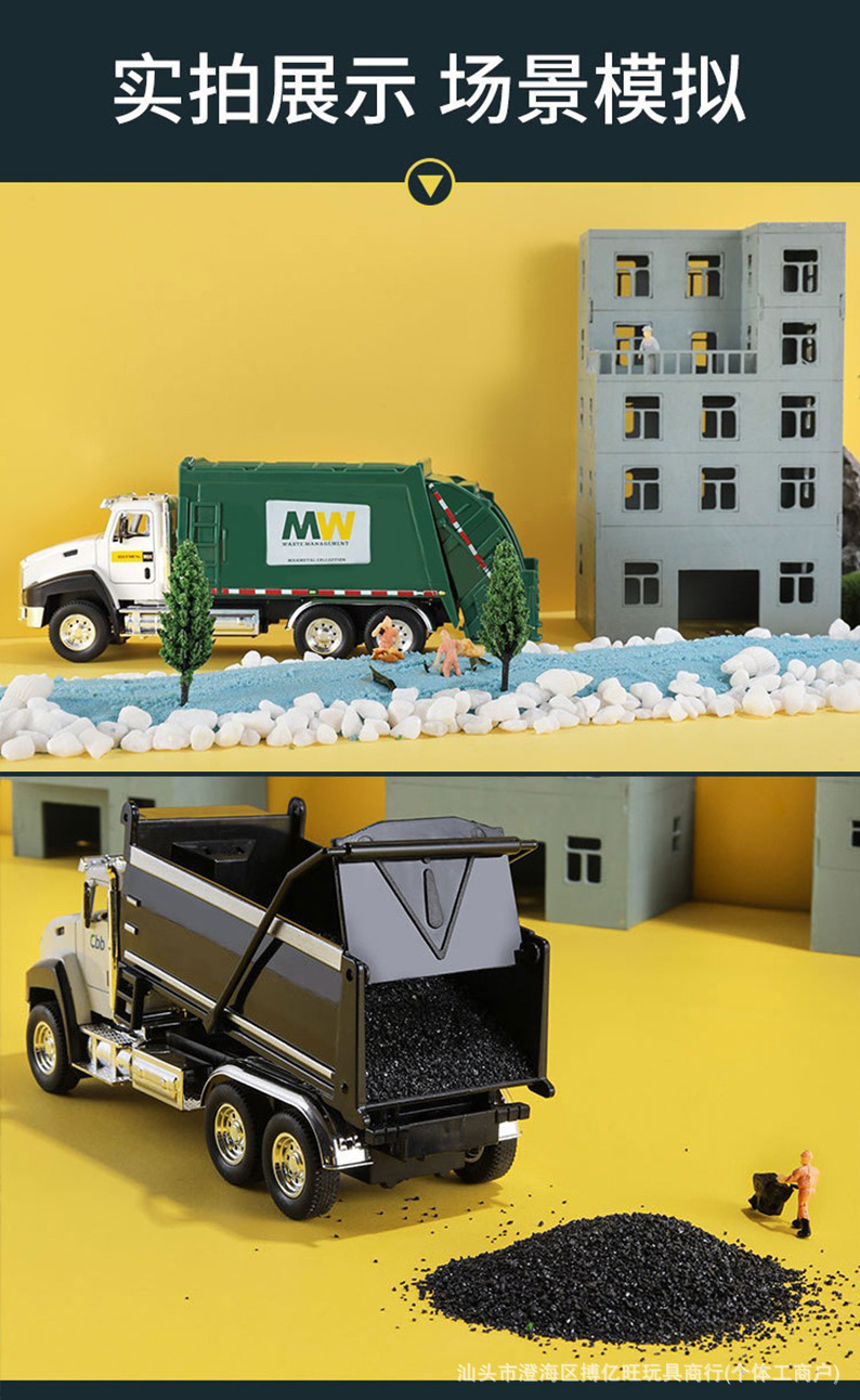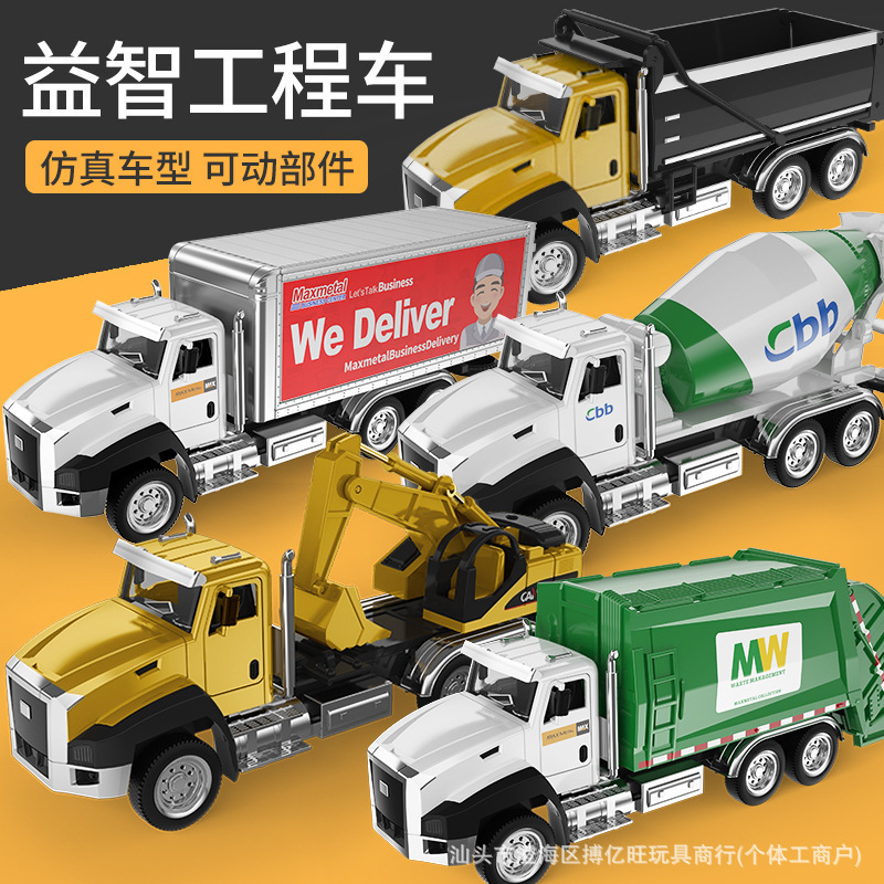 어린이 합금 시뮬레이션 엔지니어링 차량 장난감 모델 위생 트럭 소방차 백 포스 조합 세트 실속 국경