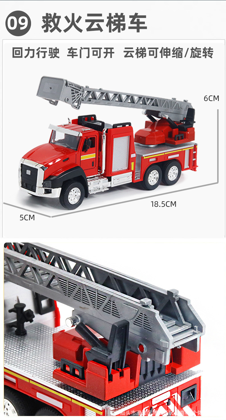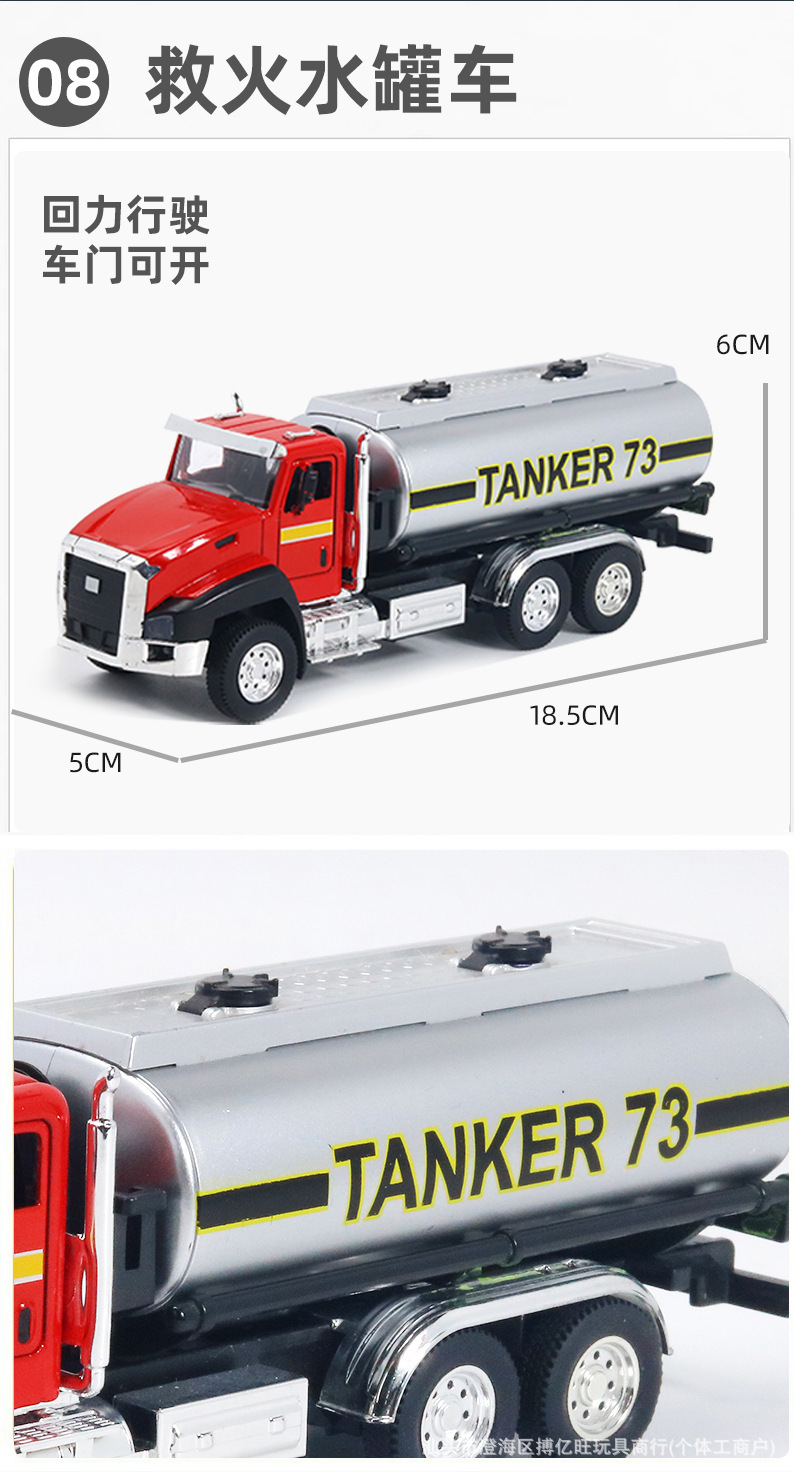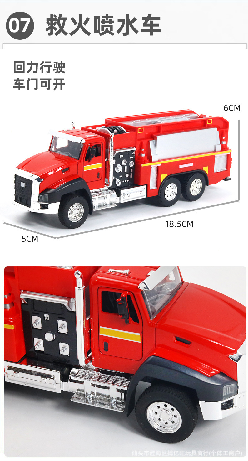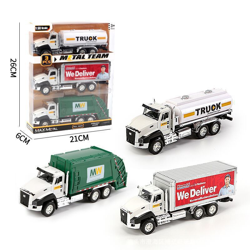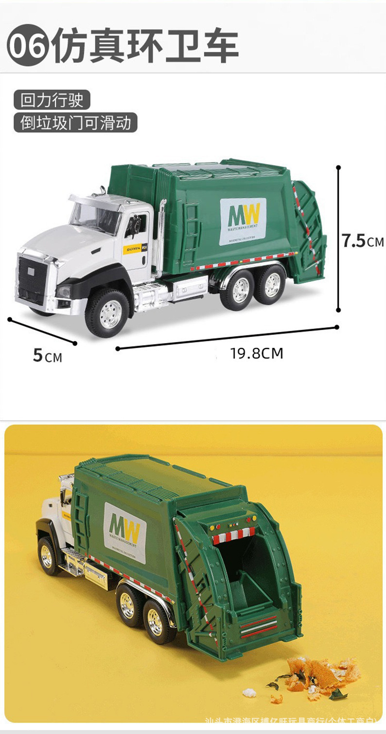 어린이 합금 시뮬레이션 엔지니어링 차량 장난감 모델 위생 트럭 소방차 백 포스 조합 세트 실속 국경스토어 가기