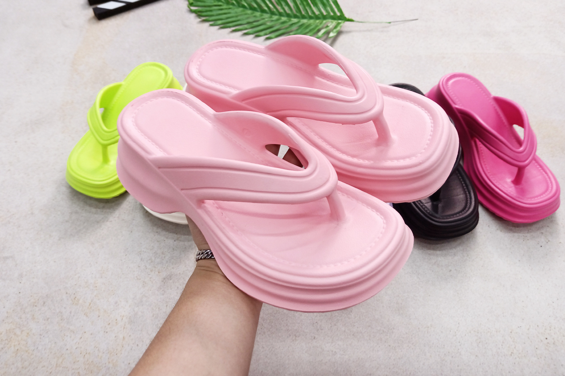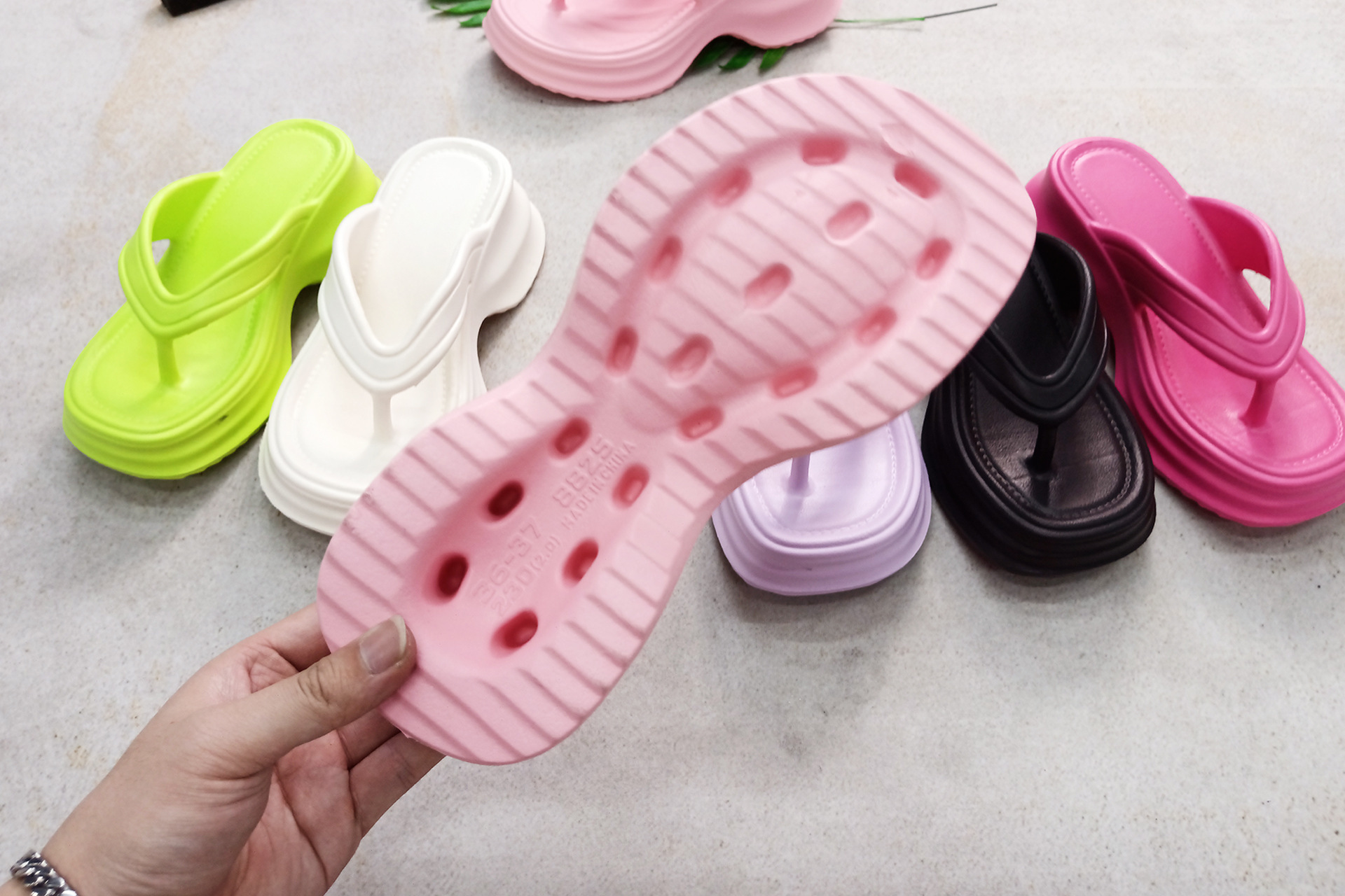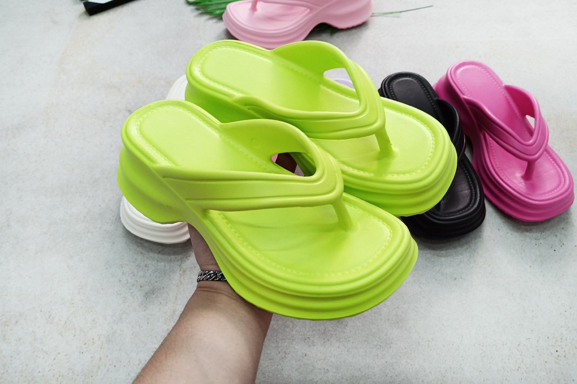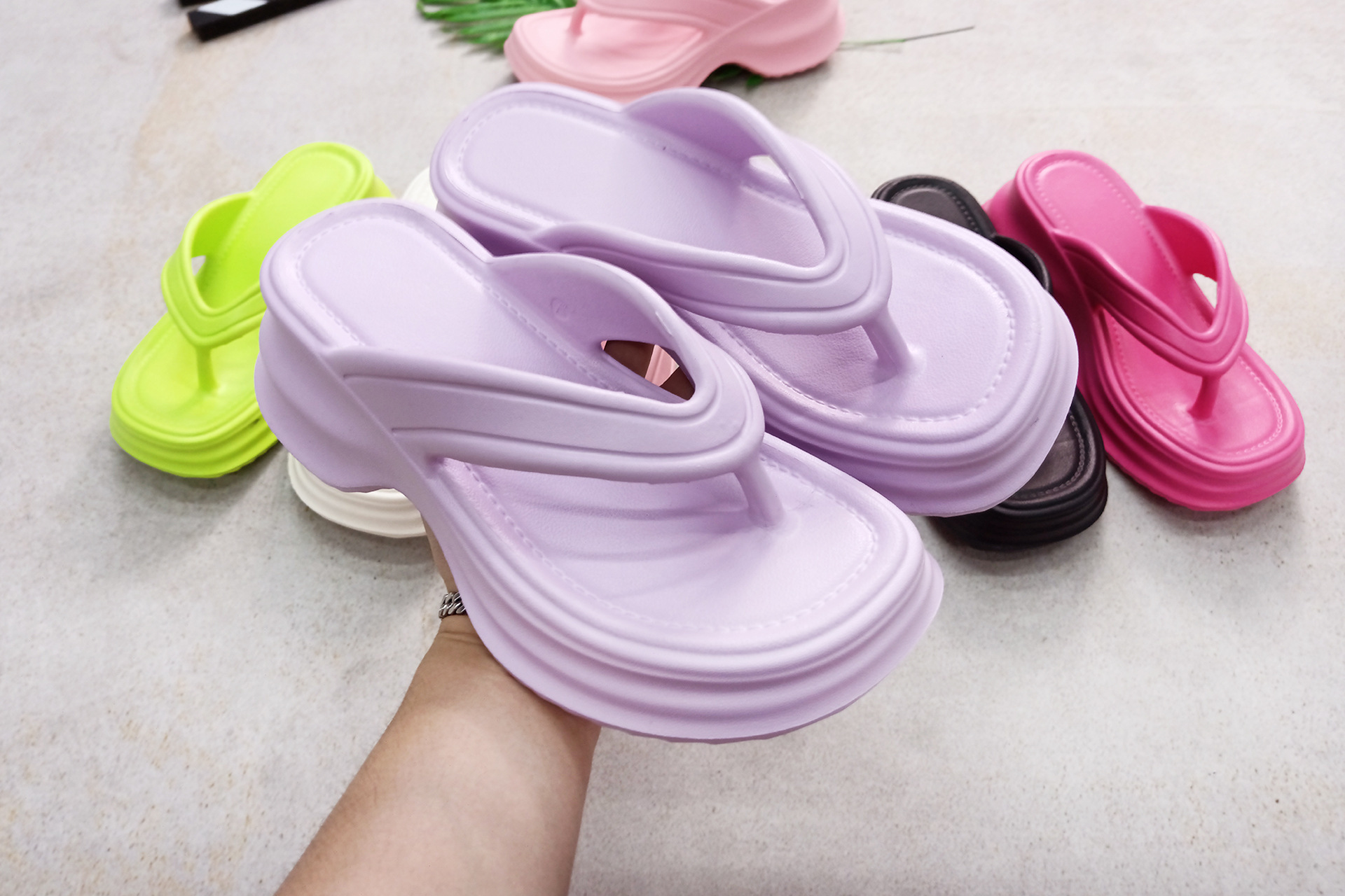 새로운 에바 슬리퍼 여성들은 두꺼운 바닥 플립 플롭을 느끼며 배설물을 밟습니다. 2024 여름 국경을 넘는 대외 무역 해변 샌들 도매스토어 가기