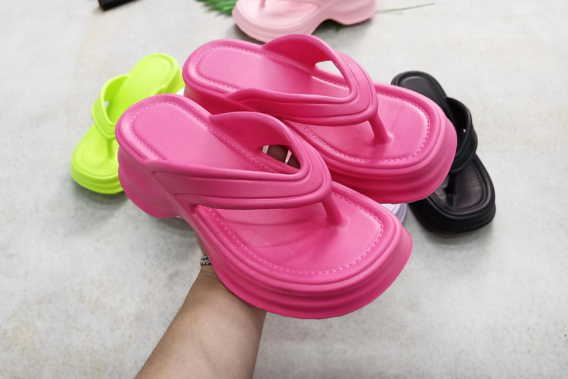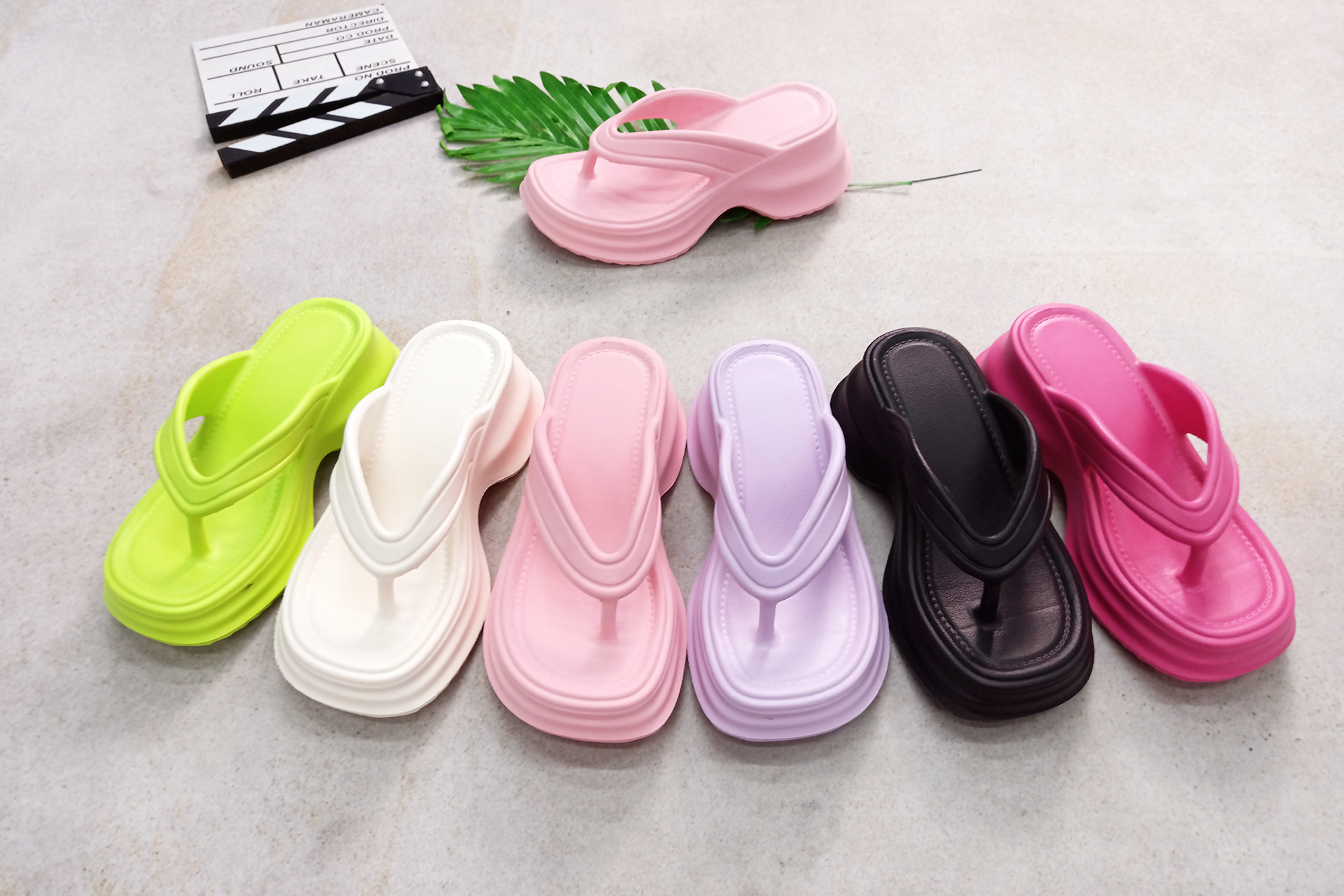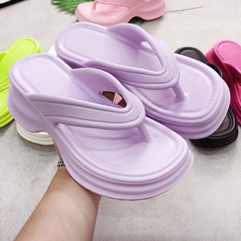 새로운 에바 슬리퍼 여성들은 두꺼운 바닥 플립 플롭을 느끼며 배설물을 밟습니다. 2024 여름 국경을 넘는 대외 무역 해변 샌들 도매스토어 가기