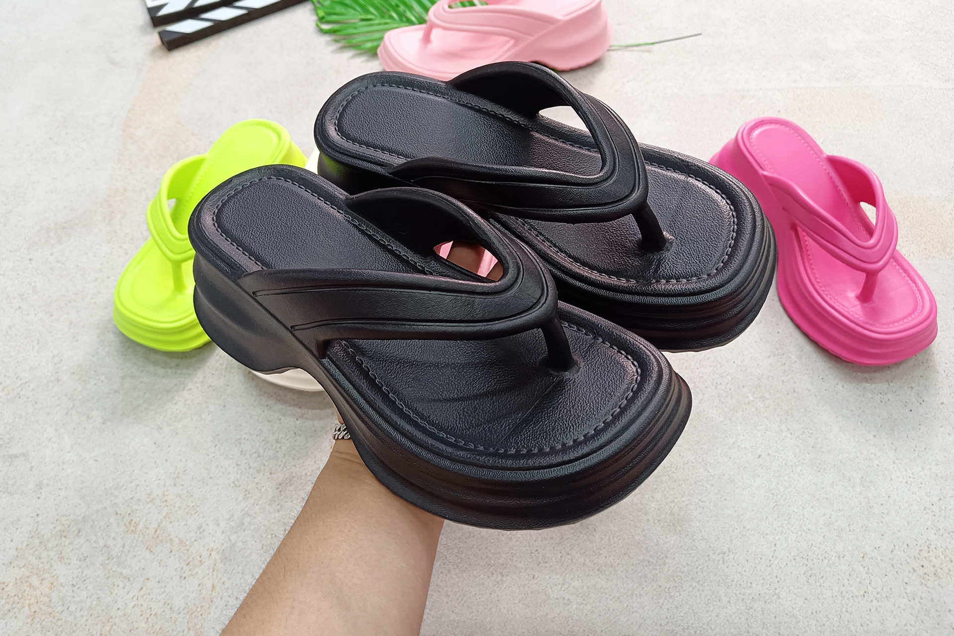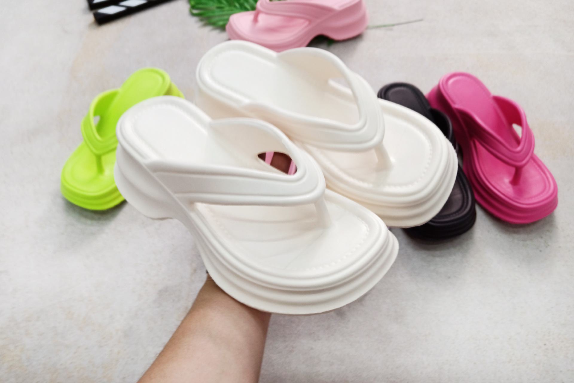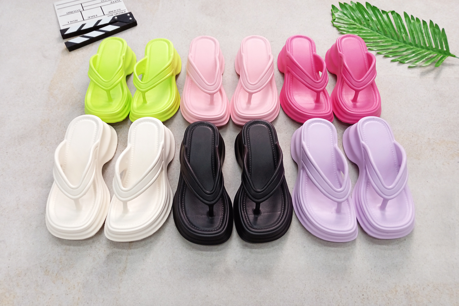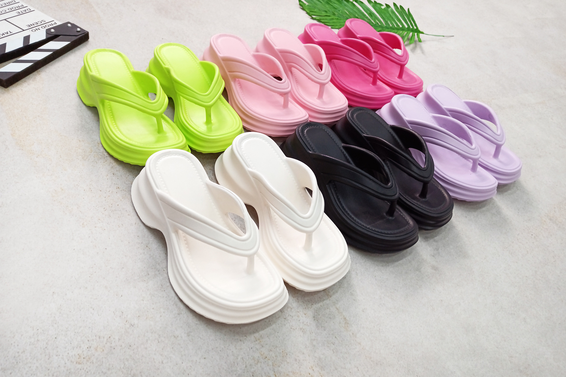 새로운 에바 슬리퍼 여성들은 두꺼운 바닥 플립 플롭을 느끼며 배설물을 밟습니다. 2024 여름 국경을 넘는 대외 무역 해변 샌들 도매스토어 가기