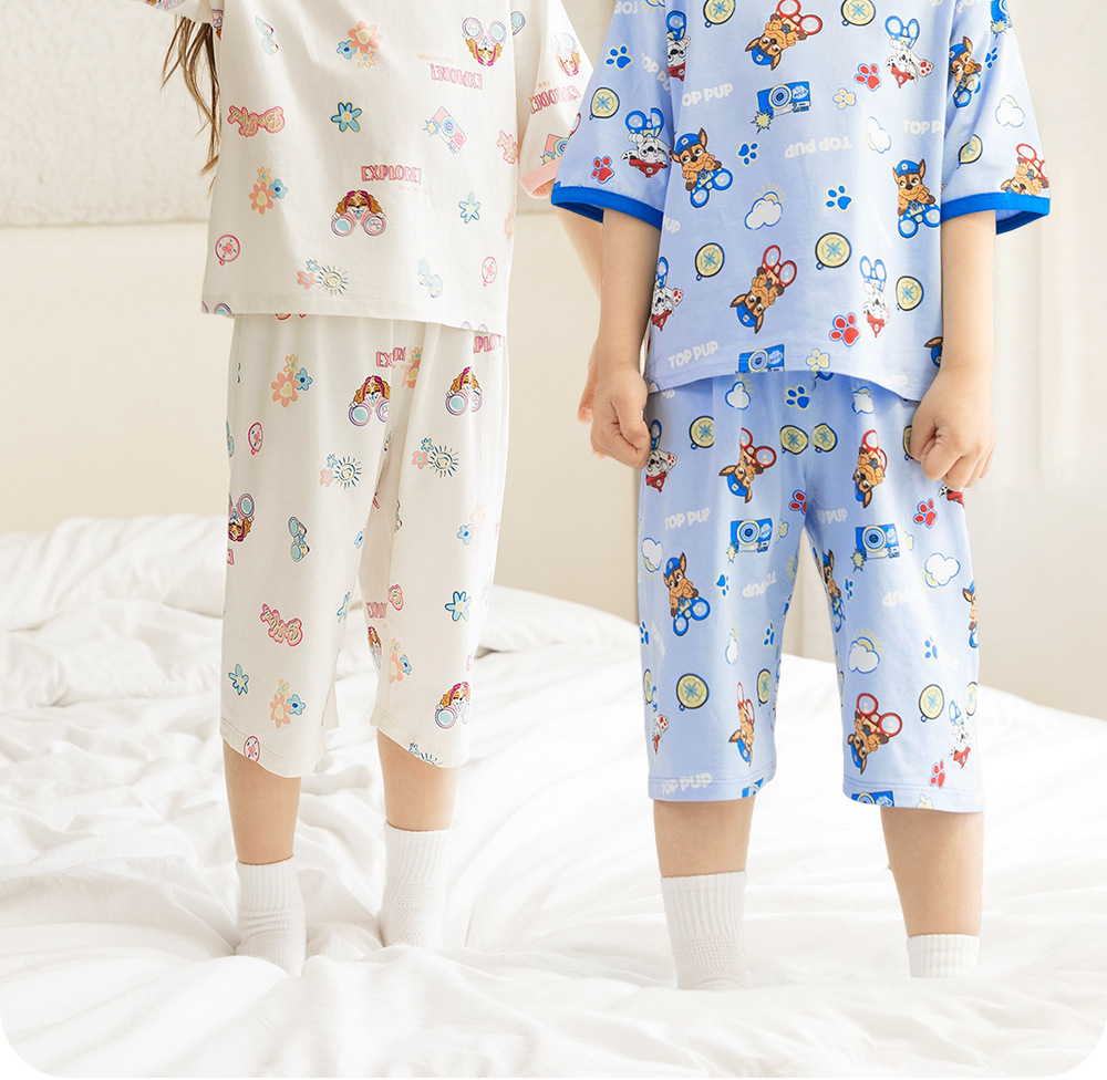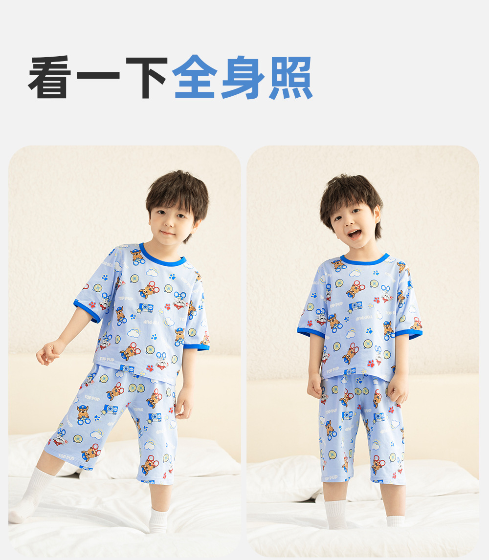 강아지 팀 어린이 잠옷 아기 홈웨어 세트 여름 얇은 면 잠옷 남아용 잠옷스토어 가기