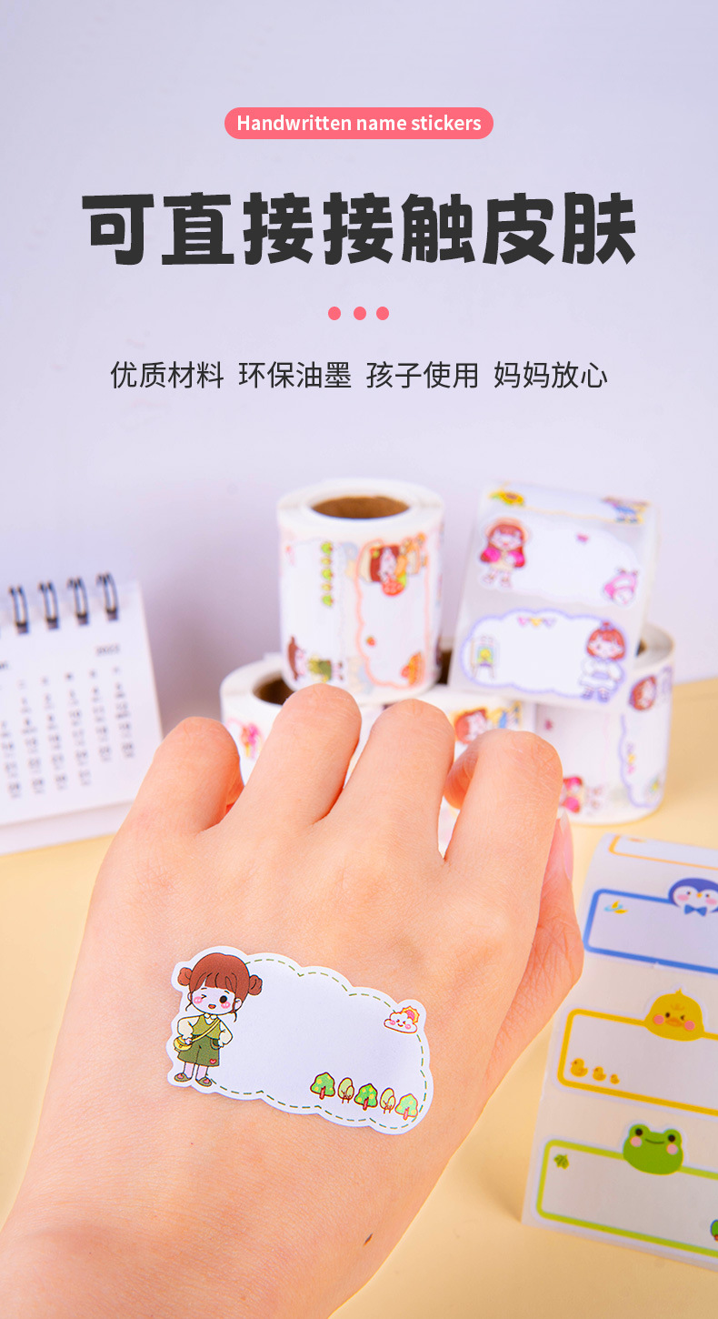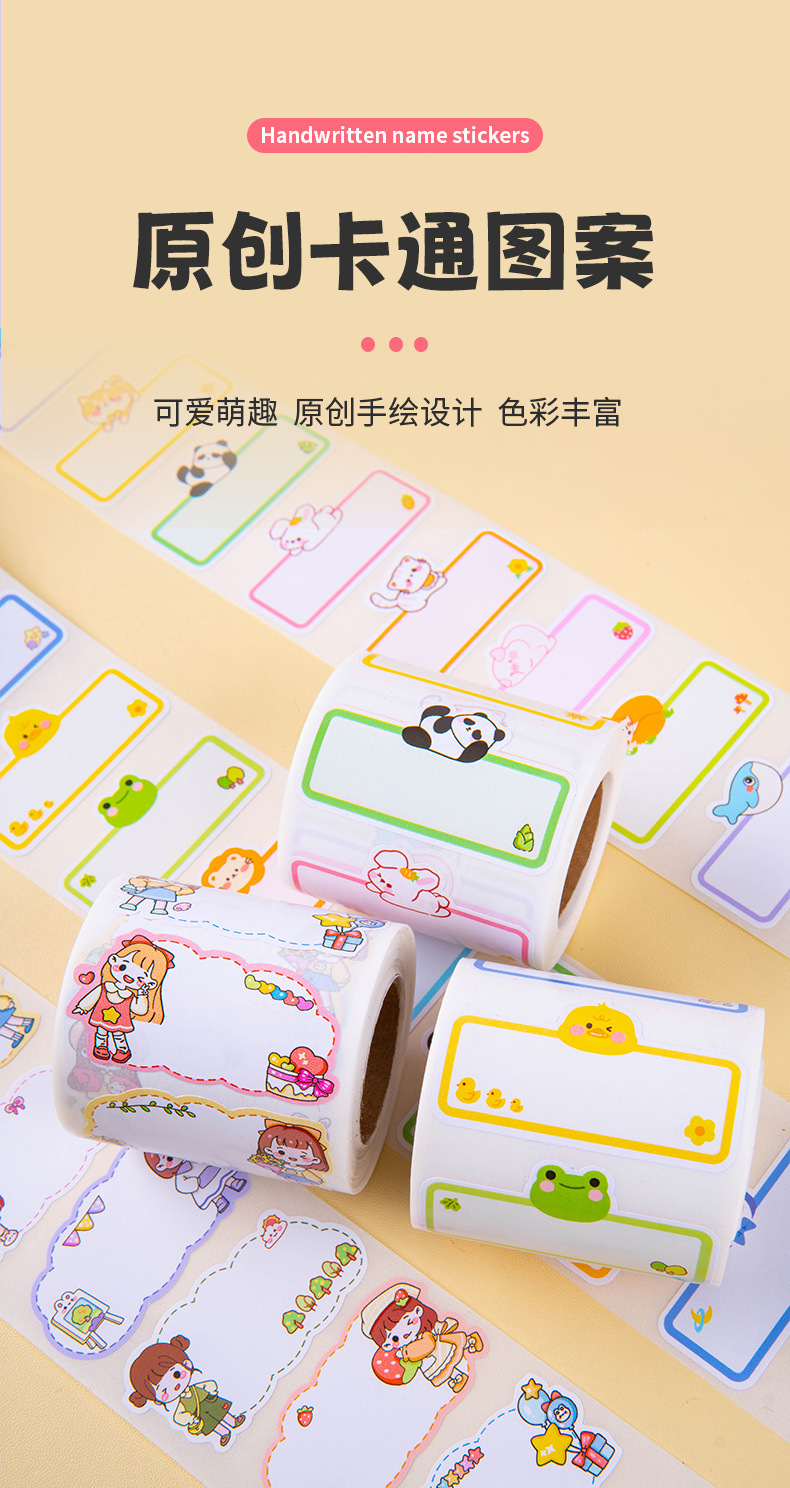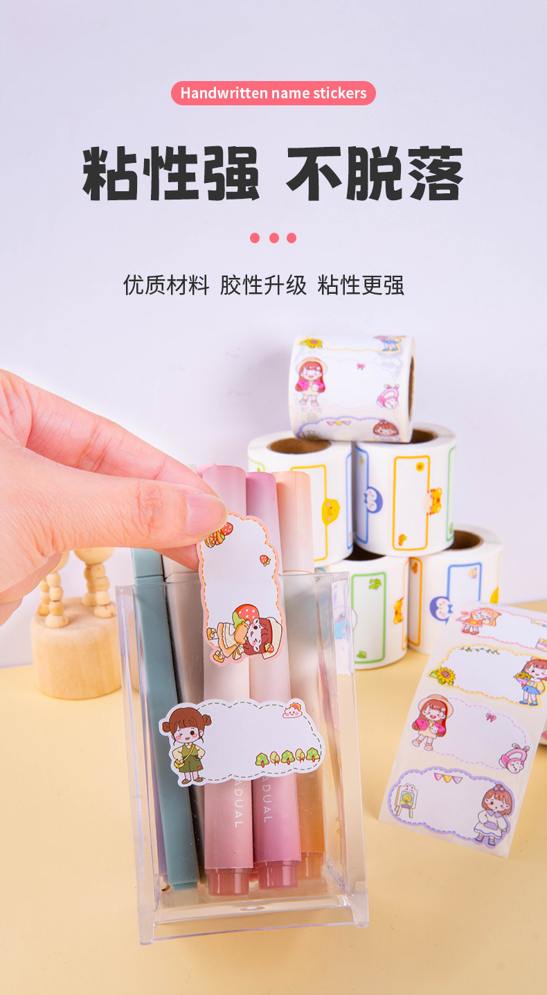 만화 이름 스티커 필기 물 컵 스티커 추적없는 방수 귀여운 스티커 유치원 이름 스티커 어린이 라벨 스티커스토어 가기