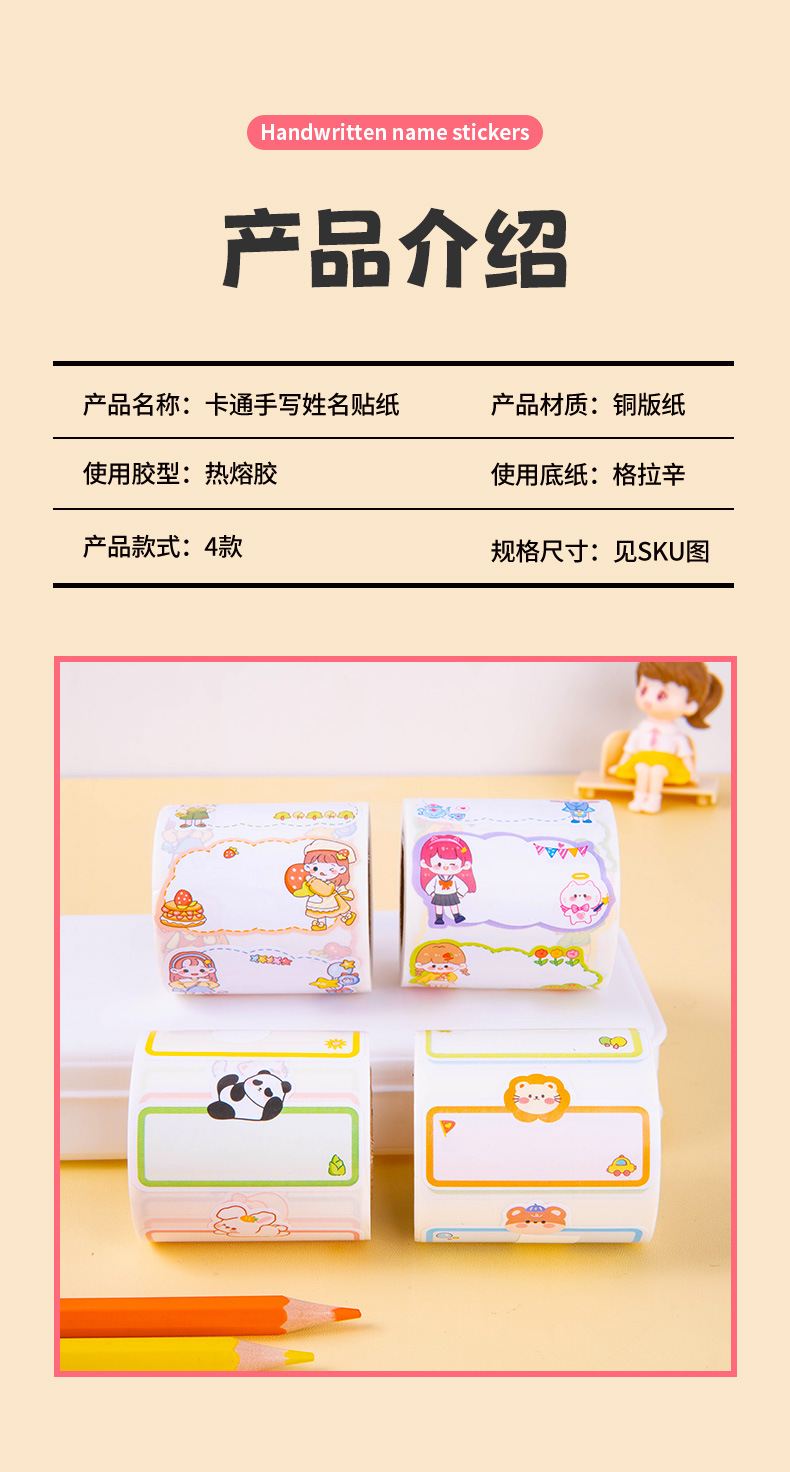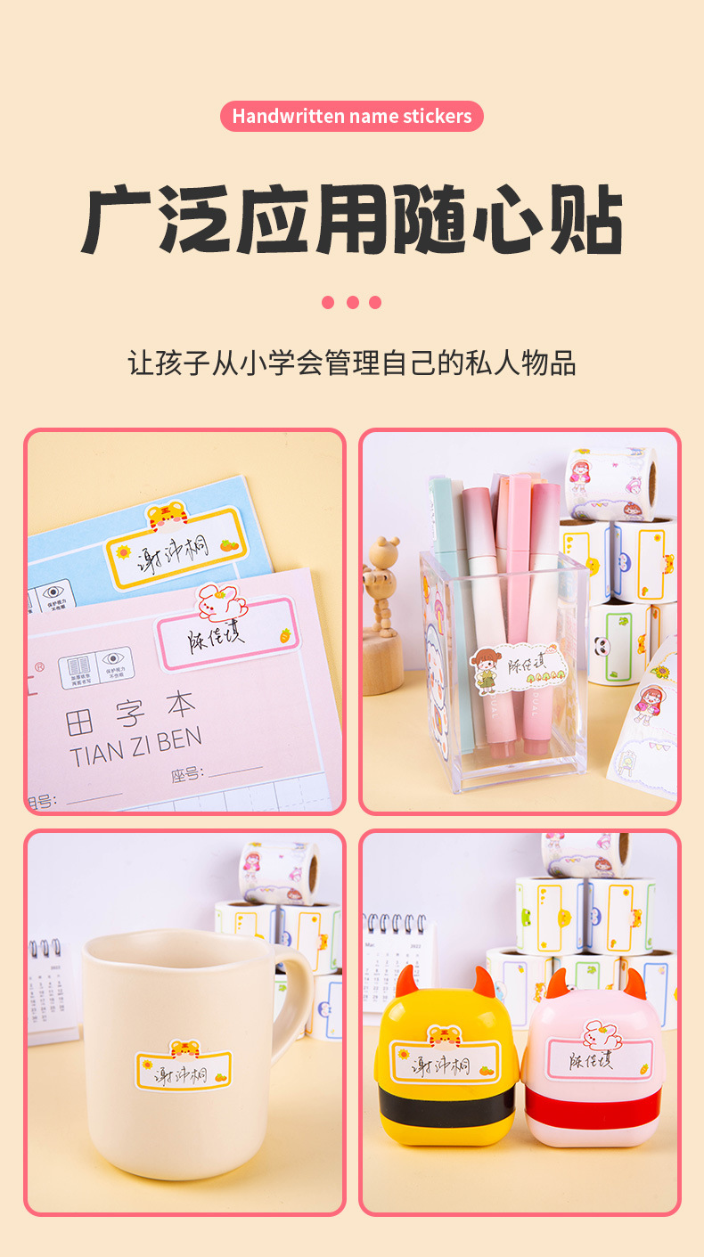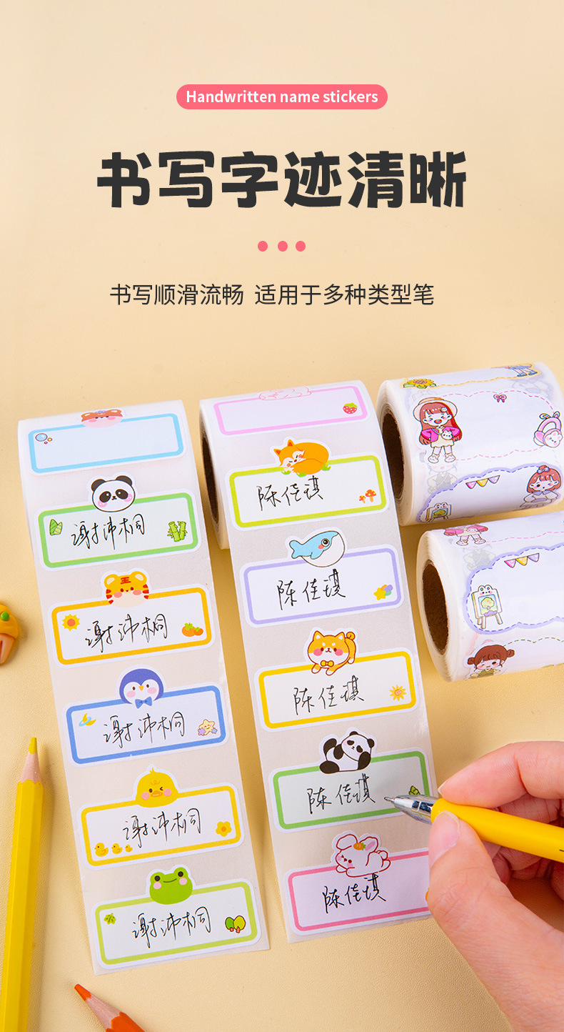 만화 이름 스티커 필기 물 컵 스티커 추적없는 방수 귀여운 스티커 유치원 이름 스티커 어린이 라벨 스티커스토어 가기