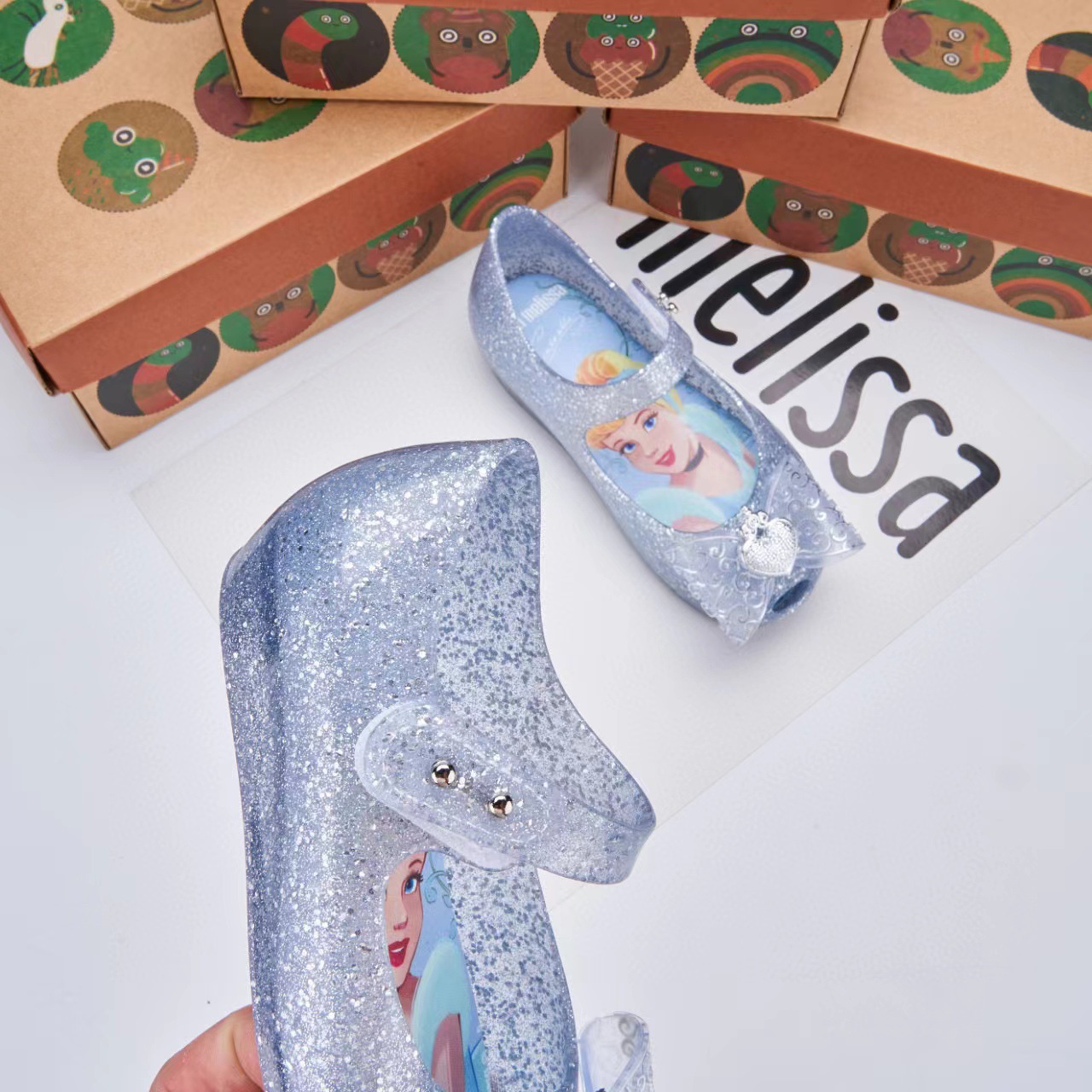 2024 멜리스*a 여아 젤리 샌들 엘사 공주 리본 오픈토 샌들 여아용스토어 가기