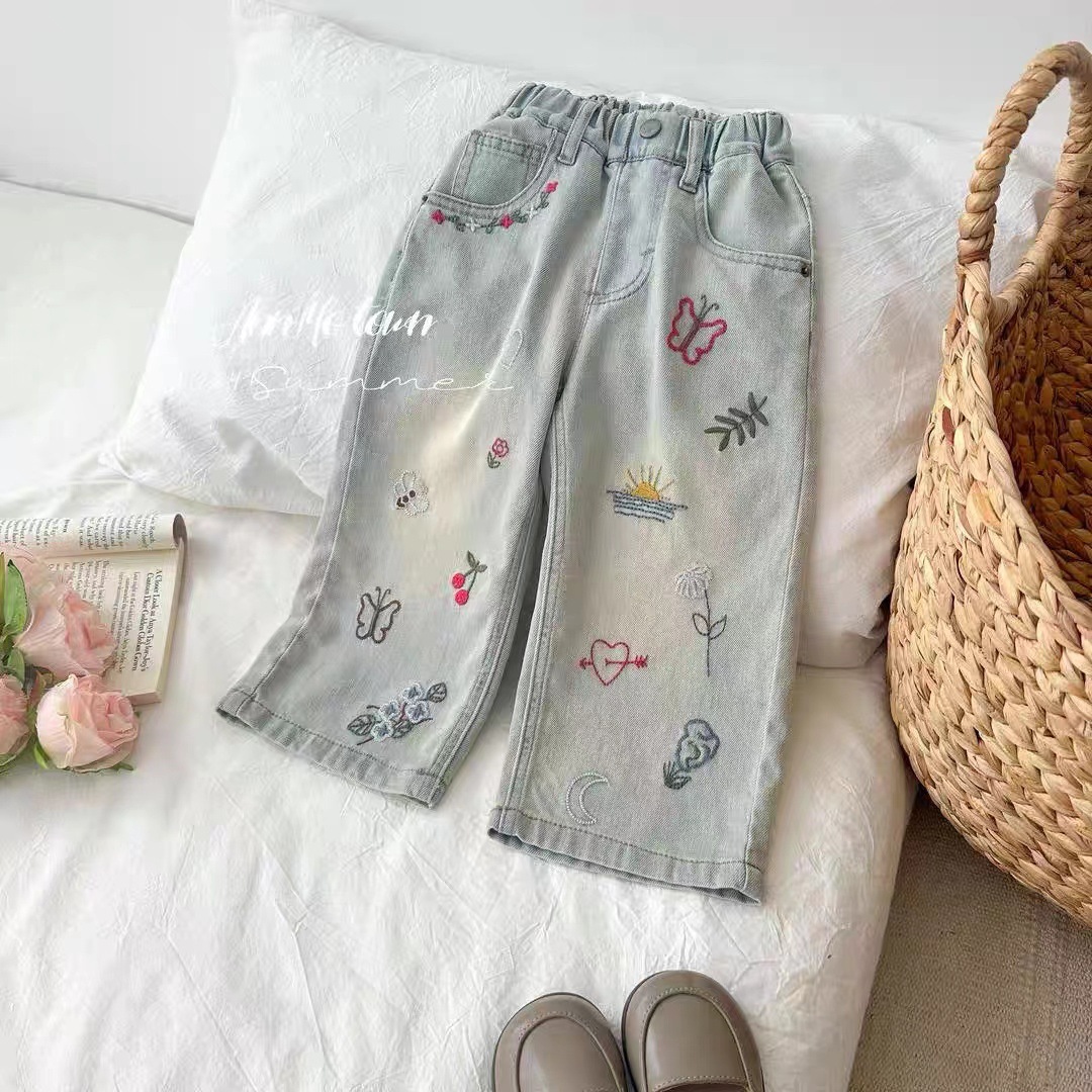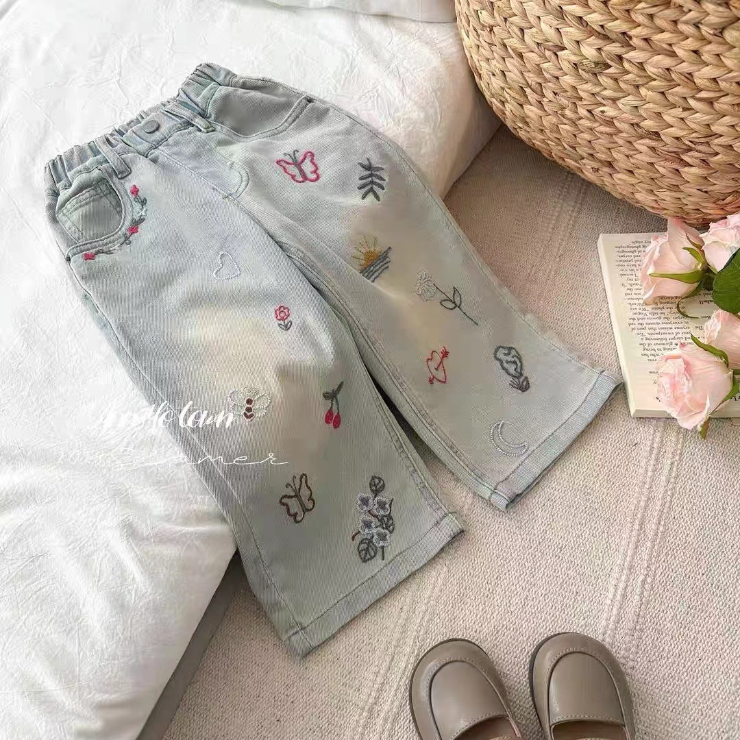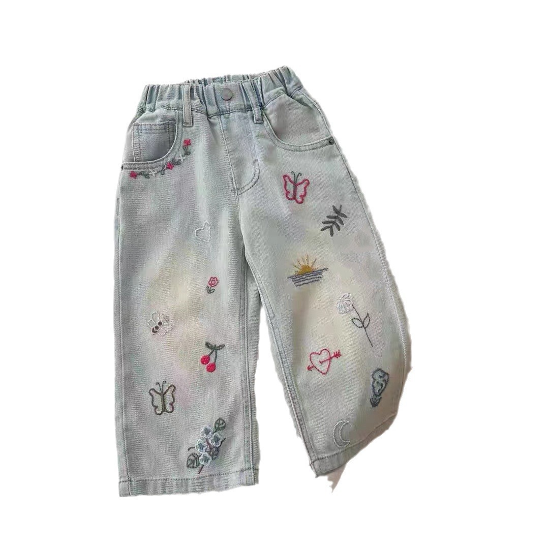 소녀의 봄과 여름 낙서 청바지 한국 스타일 여성의 보물 유행 느슨한 직선 캐주얼 바지 어린 소녀의 바지