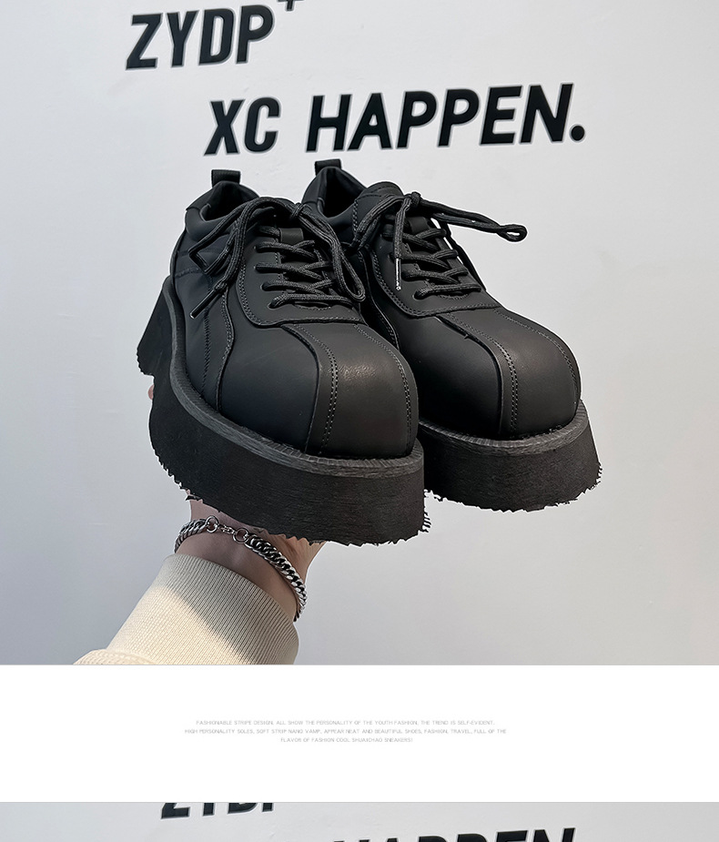 두꺼운 밑창 증가 어두운 틈새 더비 신발 고급 가죽 신발 2024 캐주얼 프로스트 블랙 머핀 신발스토어 가기