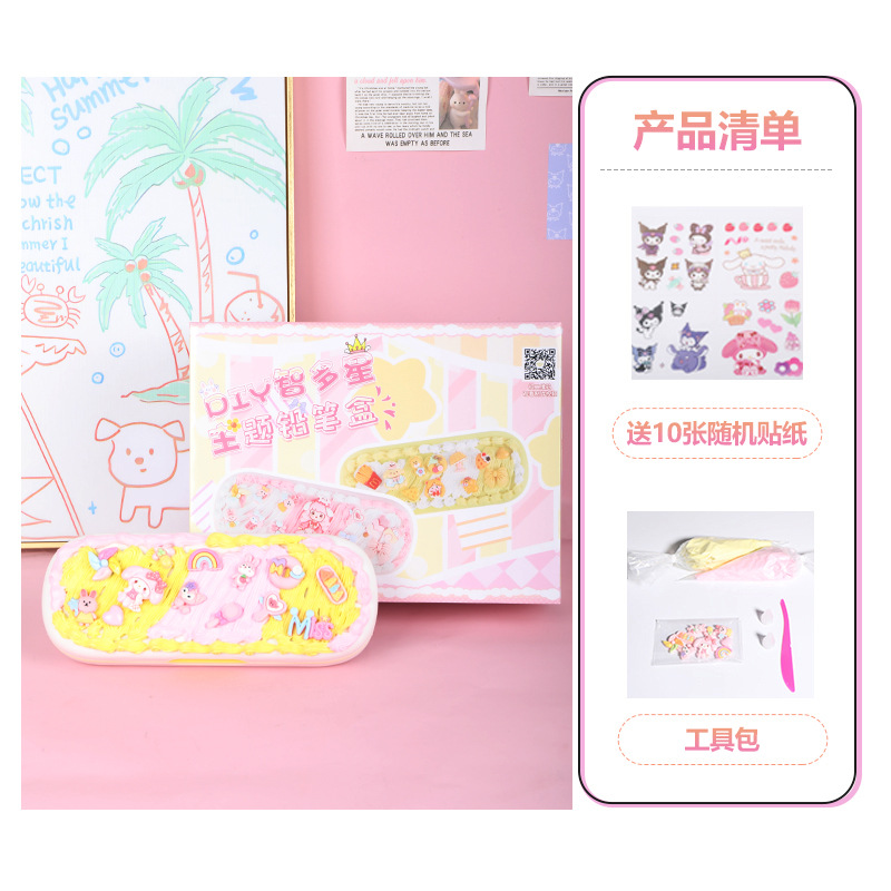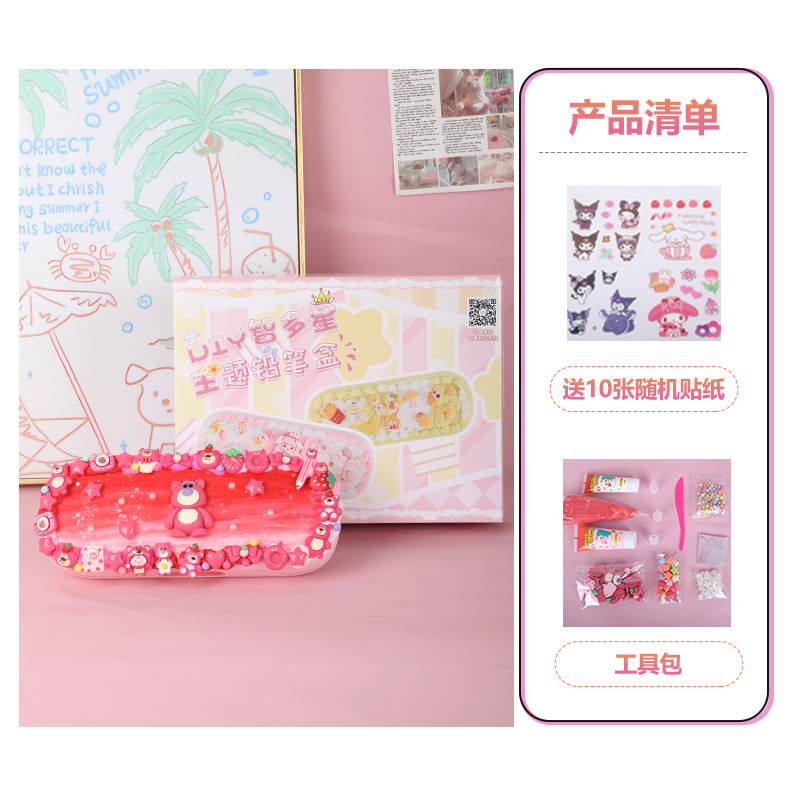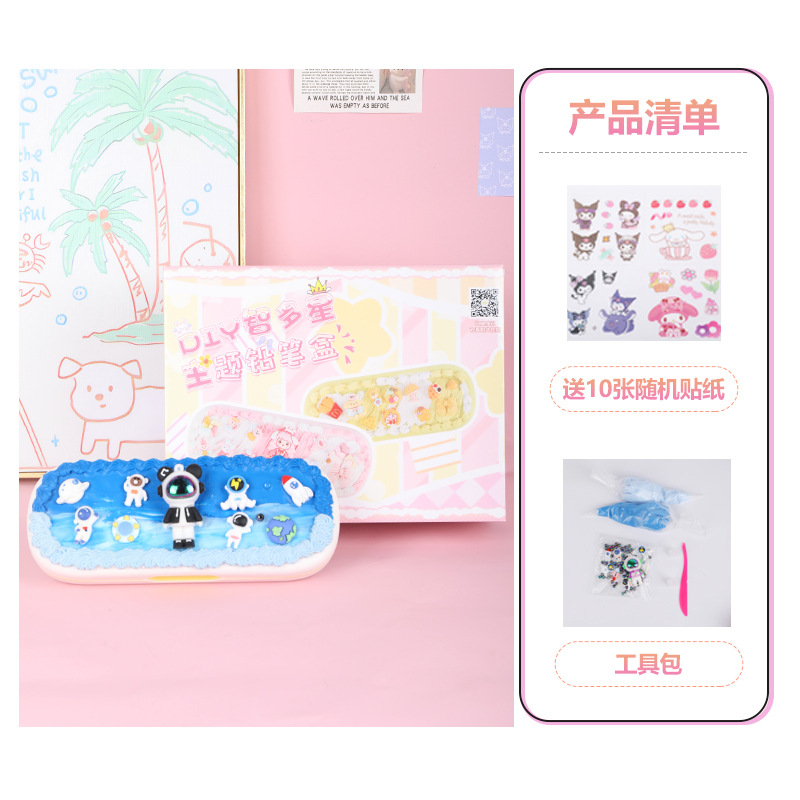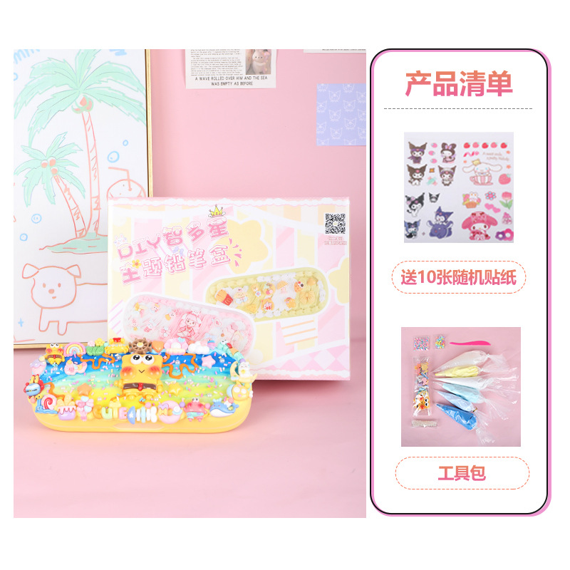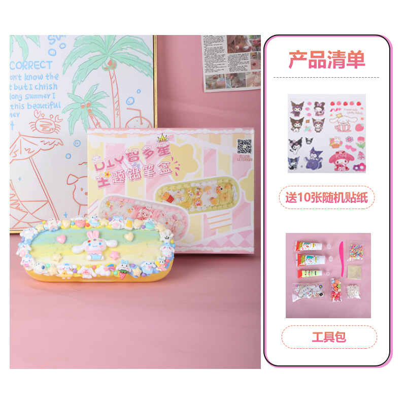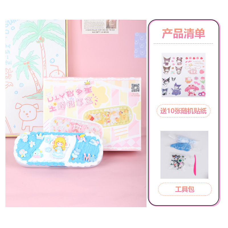 어린이 크림 접착제 더블 레이어 편지지 상자 재료 패키지 다기능 연필 상자 초등 학생 수제 diy 교육 장난감스토어 가기