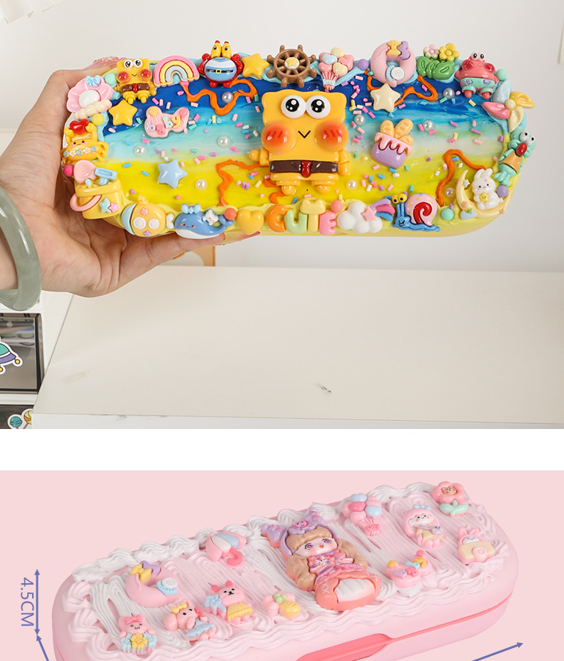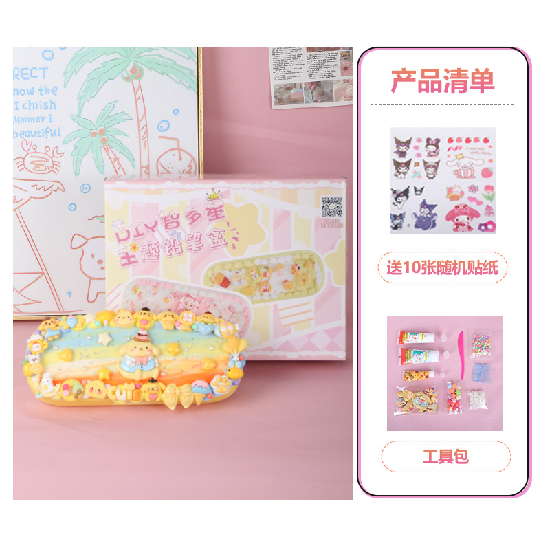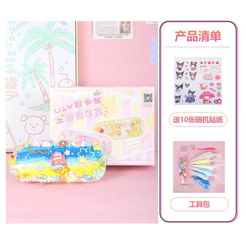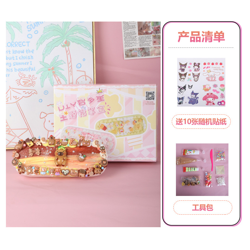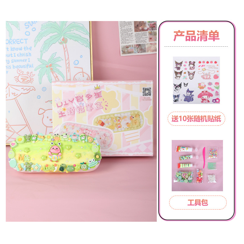 어린이 크림 접착제 더블 레이어 편지지 상자 재료 패키지 다기능 연필 상자 초등 학생 수제 diy 교육 장난감스토어 가기